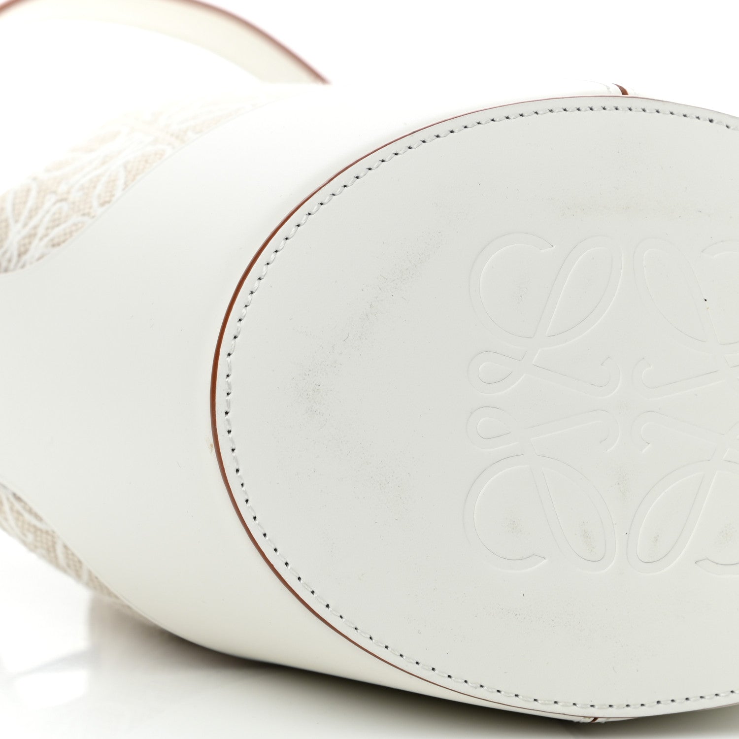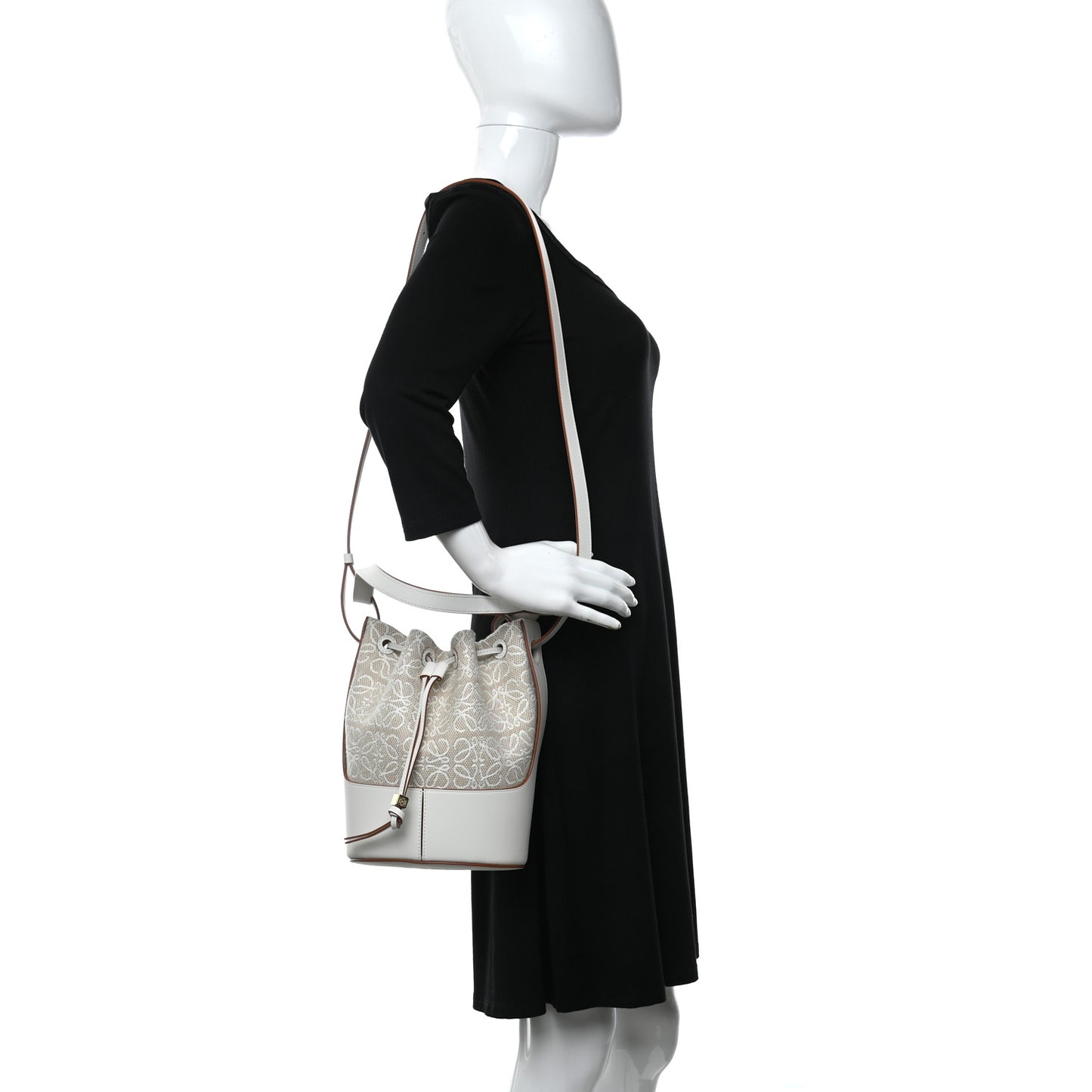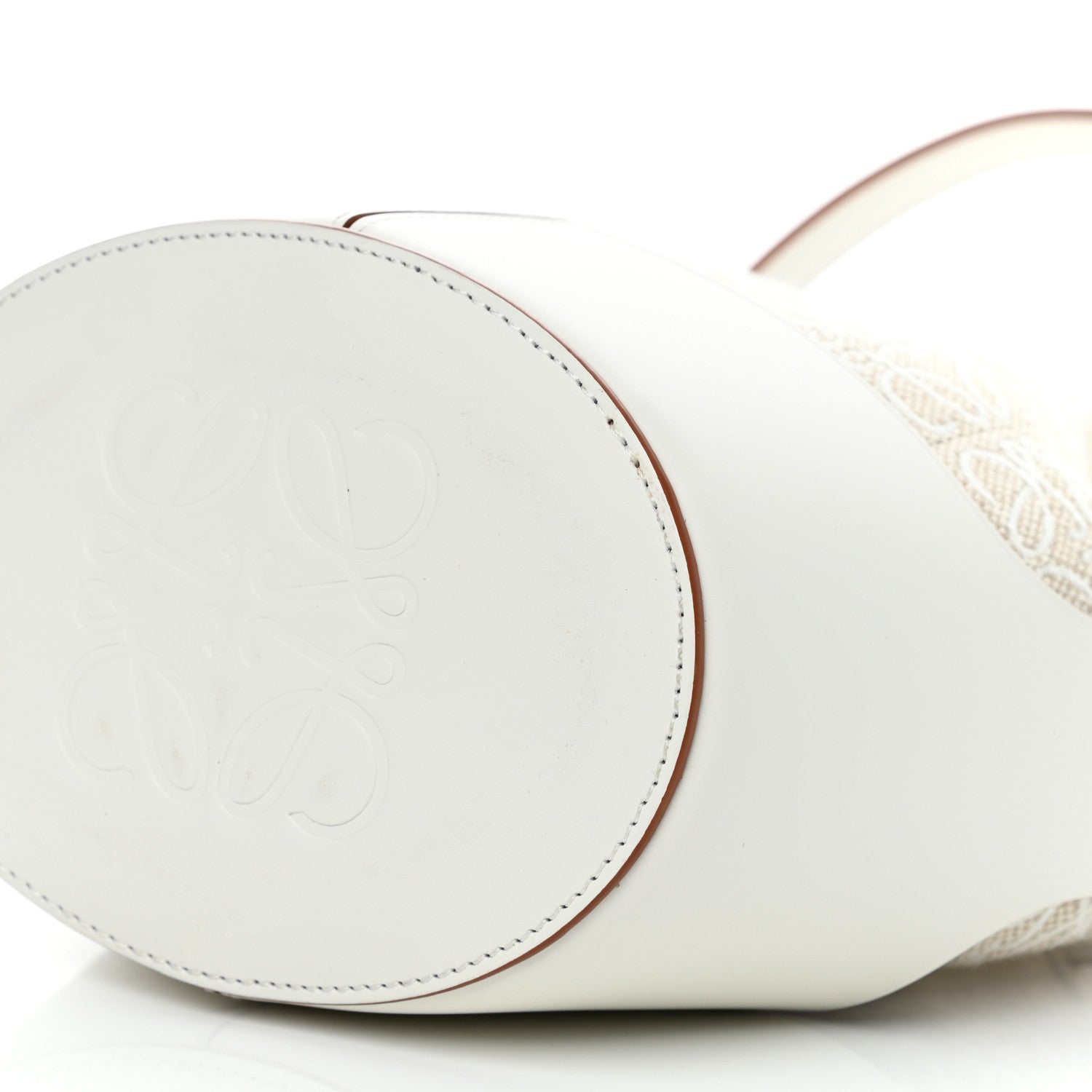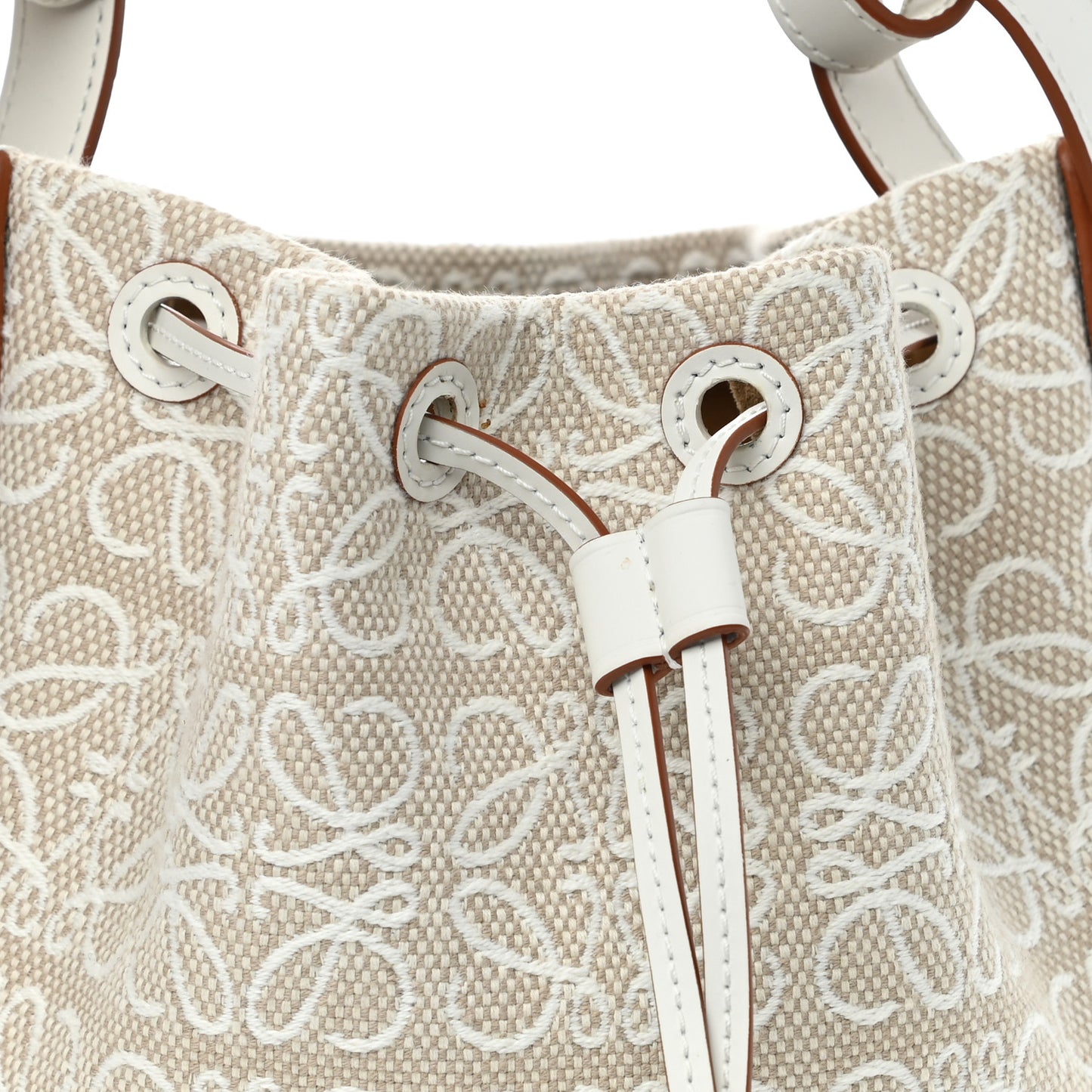 Loewe/ Bags/ Shoulder Bags /Loewe Calfskin Jacquard Linen Anagram Embroidered Small Balloon Bucket Bag Ecru White