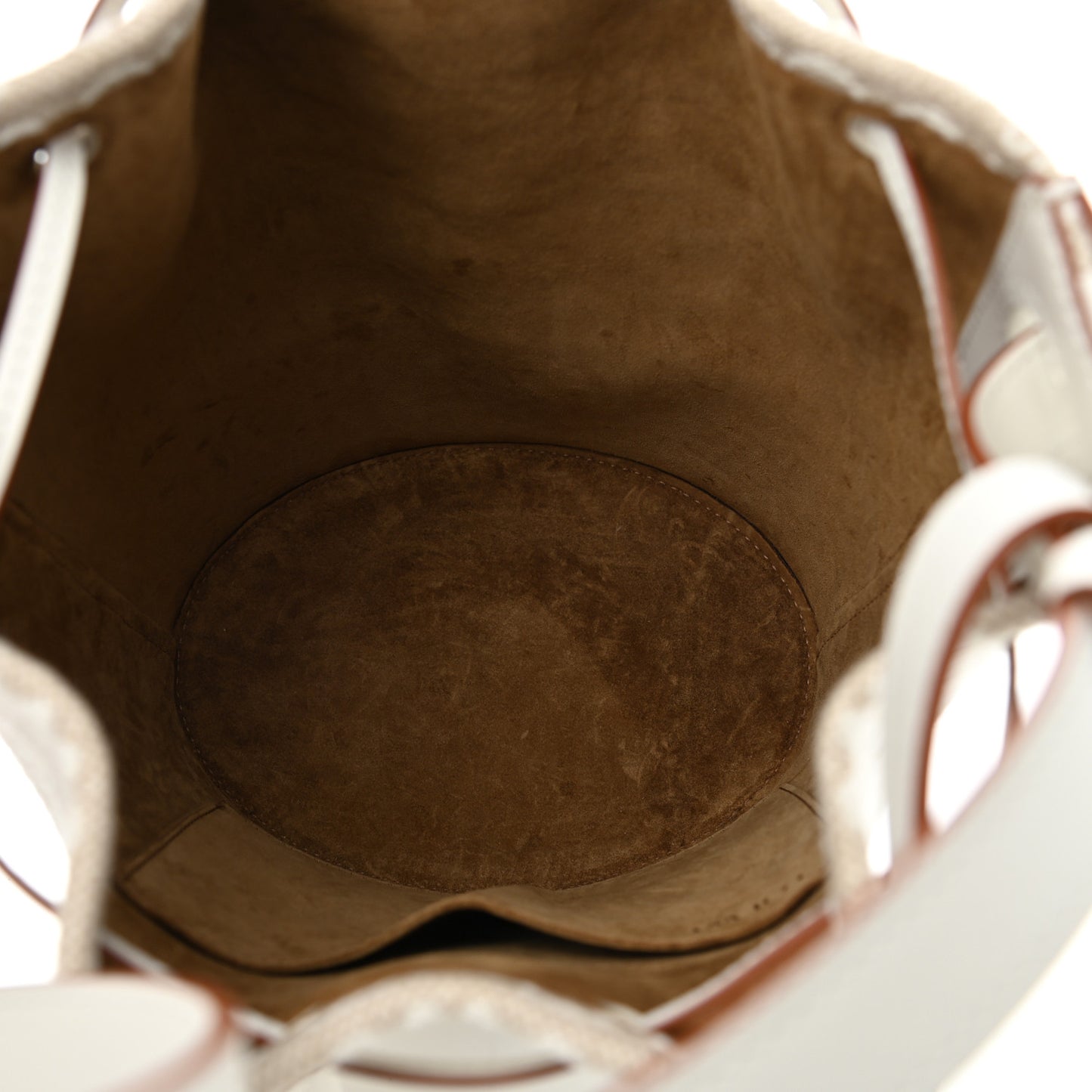 Calfskin Jacquard Linen Anagram Embroidered Small Balloon Bucket Bag Ecru White