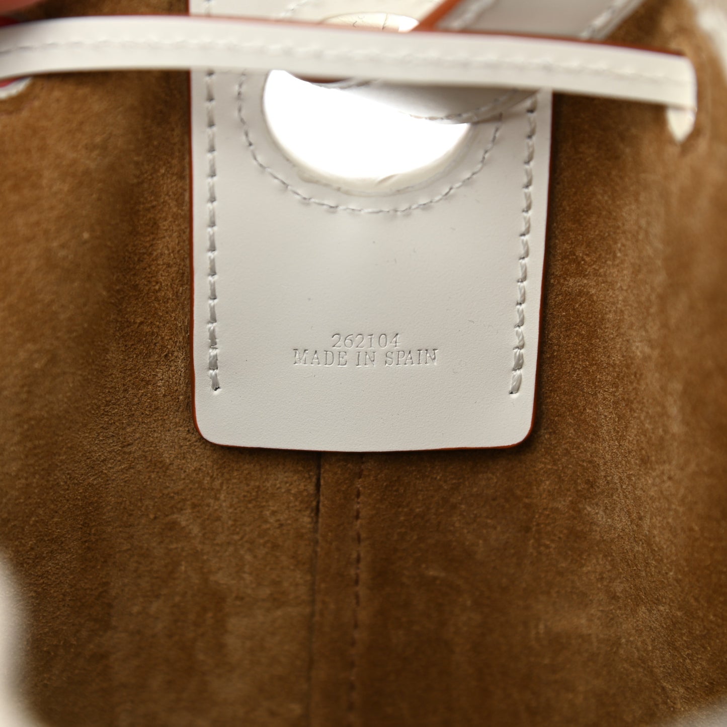 This is an authentic LOEWE Calfskin Jacquard Linen Anagram Embroidered Small Balloon Bucket Bag in Ecru White. This chic and lovely bucket bag is crafted of linen canvas. This handbag features a sturdy calfskin base that's debossed with Loewe's Anagram and reinforced adjustable leather shoulder strap. The top opens to a spacious brown leather interior with a flat pocket.Follow this item for alerts. Loewe is a registered trademark of Loewe. FASHIONPHILE is not affiliated with Loewe.