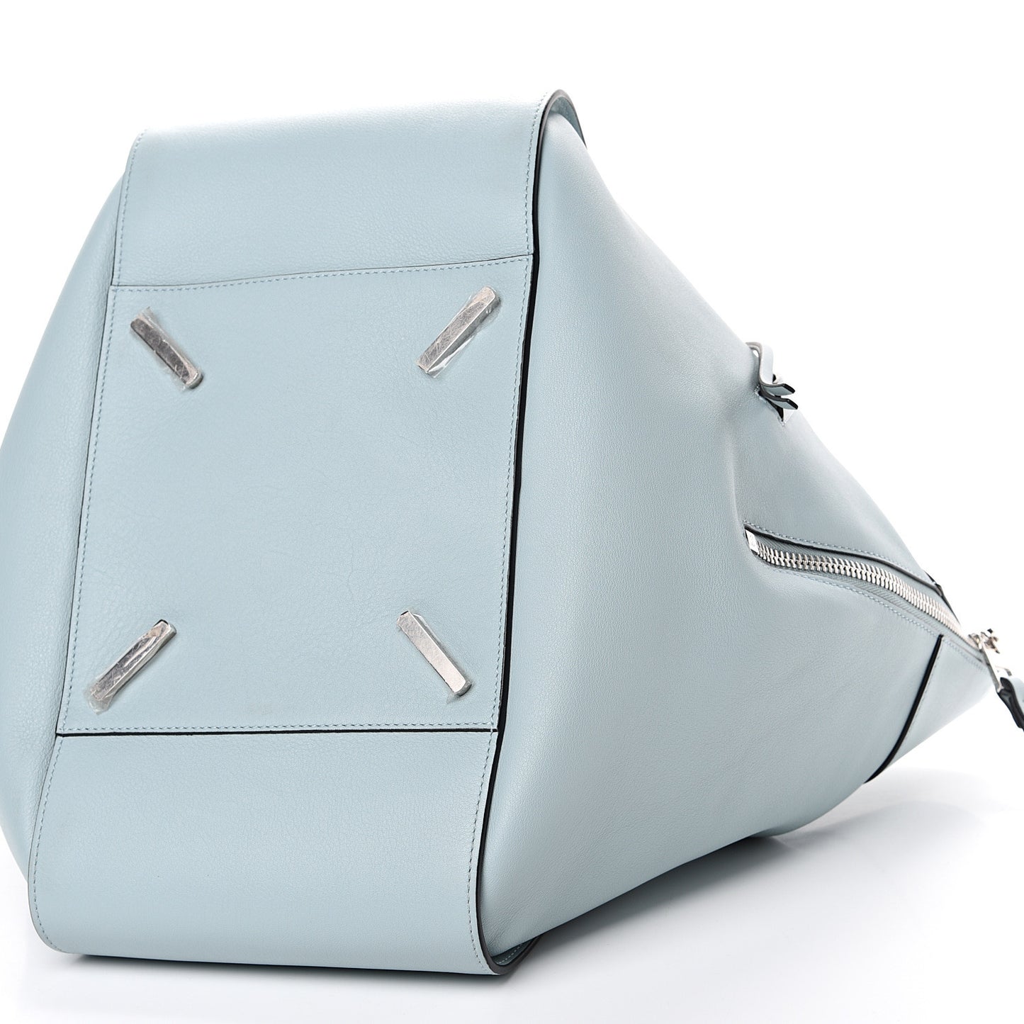 This is an authentic LOEWE Calfskin Medium Hammock Shoulder Bag in Aqua. This chic and lovely tote is crafted of luxuriously soft calfskin leather in light blue. This handbag features a unique one piece reinforced design with leather handles, a small zipper pocket, silver zippers that help expand the length of the bag and an optional adjustable shoulder strap. The top opens to a spacious black fabric interior with small patch pockets on the sides of the bag.Follow this item for alerts. Loewe is a registered trademark of Loewe. FASHIONPHILE is not affiliated with Loewe.