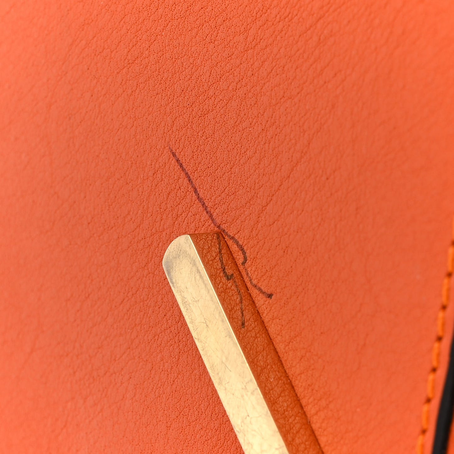 This is an authentic LOEWE Calfskin Medium Puzzle Bag in Spice Orange Pumpkin. This stunning bag is crafted of smooth calfskin leather in orange. The bag features a rolled leather handle, a rear zipper pocket, an adjustable leather shoulder strap with polished gold hardware. The top zipper opens to a fabric interior with a patch pocket.