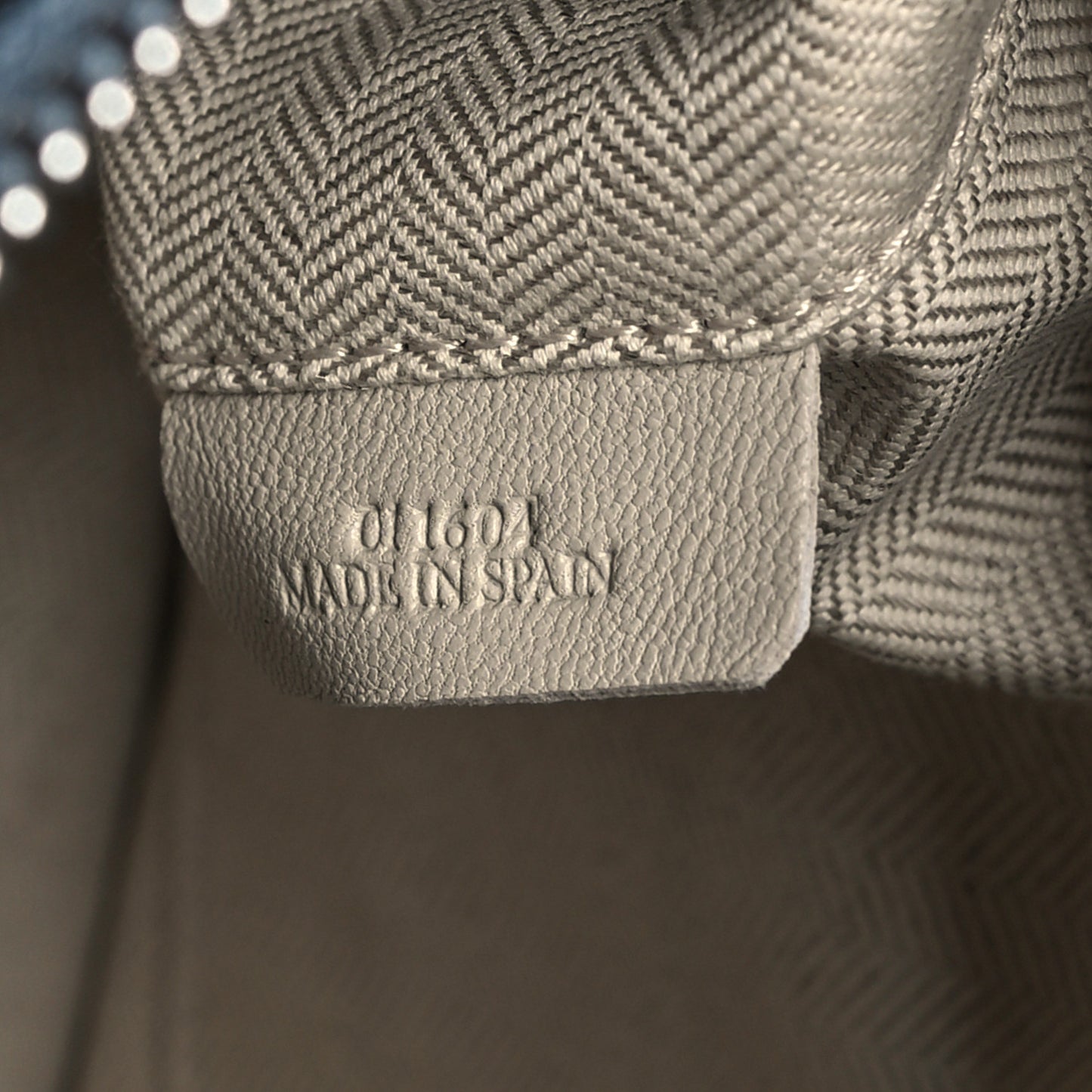 This is an authentic LOEWE Calfskin Medium Puzzle Bag in Stone Blue. This stunning shoulder bag is crafted of calfskin leather in blue. The bag features a rolled leather handle, a rear zipper pocket, and an optional, adjustable leather shoulder strap with polished silver hardware. The top zipper opens to a beige fabric interior with a patch pocket.Follow this item for alerts. Loewe is a registered trademark of Loewe. FASHIONPHILE is not affiliated with Loewe.
