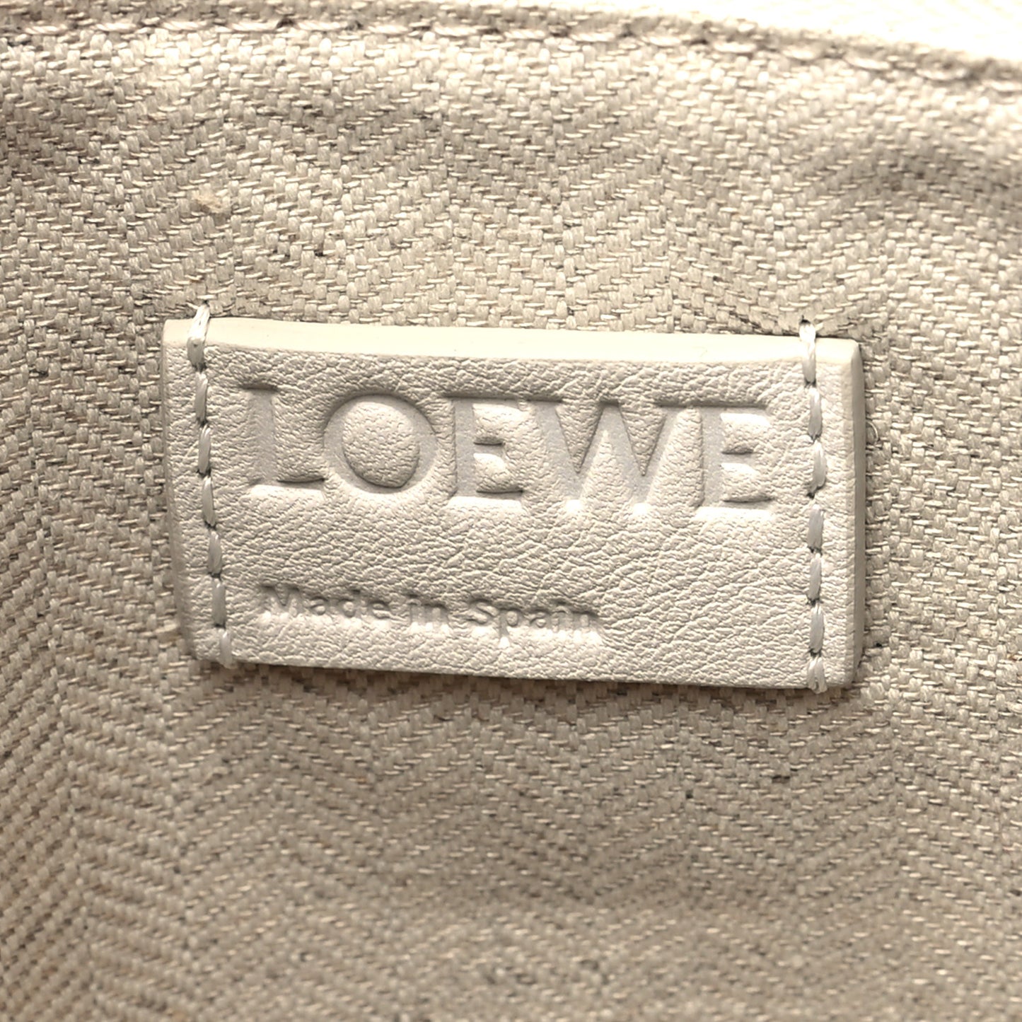 This is an authentic LOEWE Calfskin Mini Hammock Hobo in Soft White. This chic and lovely tote is crafted of luxuriously soft calfskin leather in white. This handbag features a thin strap handle, an optional leather shoulder strap, and silver hardware. The top zipper opens to a beige fabric interior.Follow this item for alerts. Loewe is a registered trademark of Loewe. FASHIONPHILE is not affiliated with Loewe.