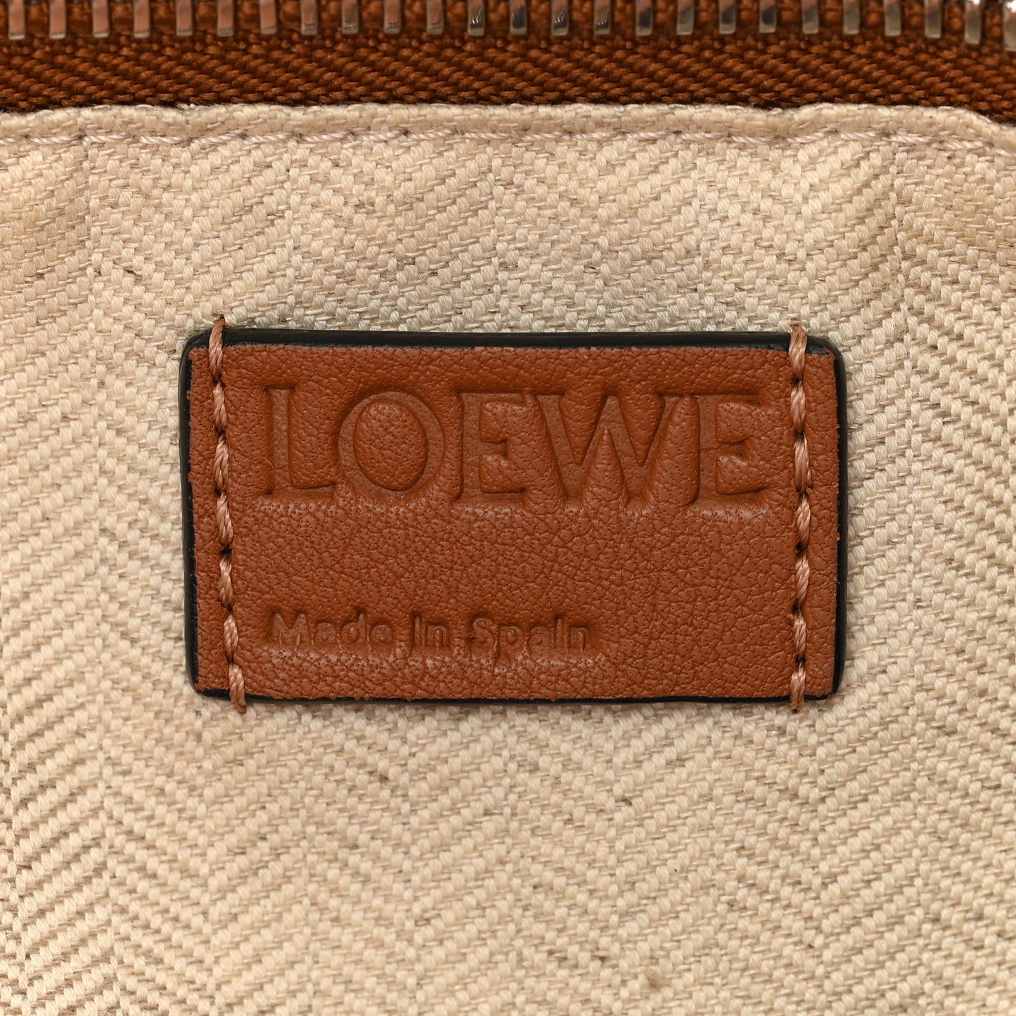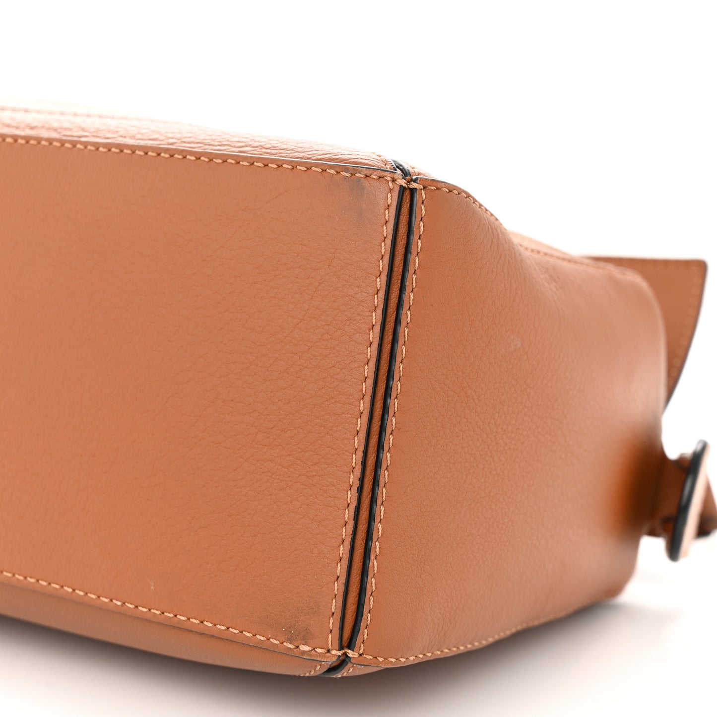 This is an authentic LOEWE Calfskin Small Puzzle Bag in Tan. This stunning shoulder bag is crafted of smooth calfskin leather in brown. The bag features a rolled leather handle, a rear zipper pocket, and an optional, adjustable leather shoulder strap with polished silver hardware. The top zipper opens to a natural fabric interior with a patch pocket.Follow this item for alerts. Loewe is a registered trademark of Loewe. FASHIONPHILE is not affiliated with Loewe.