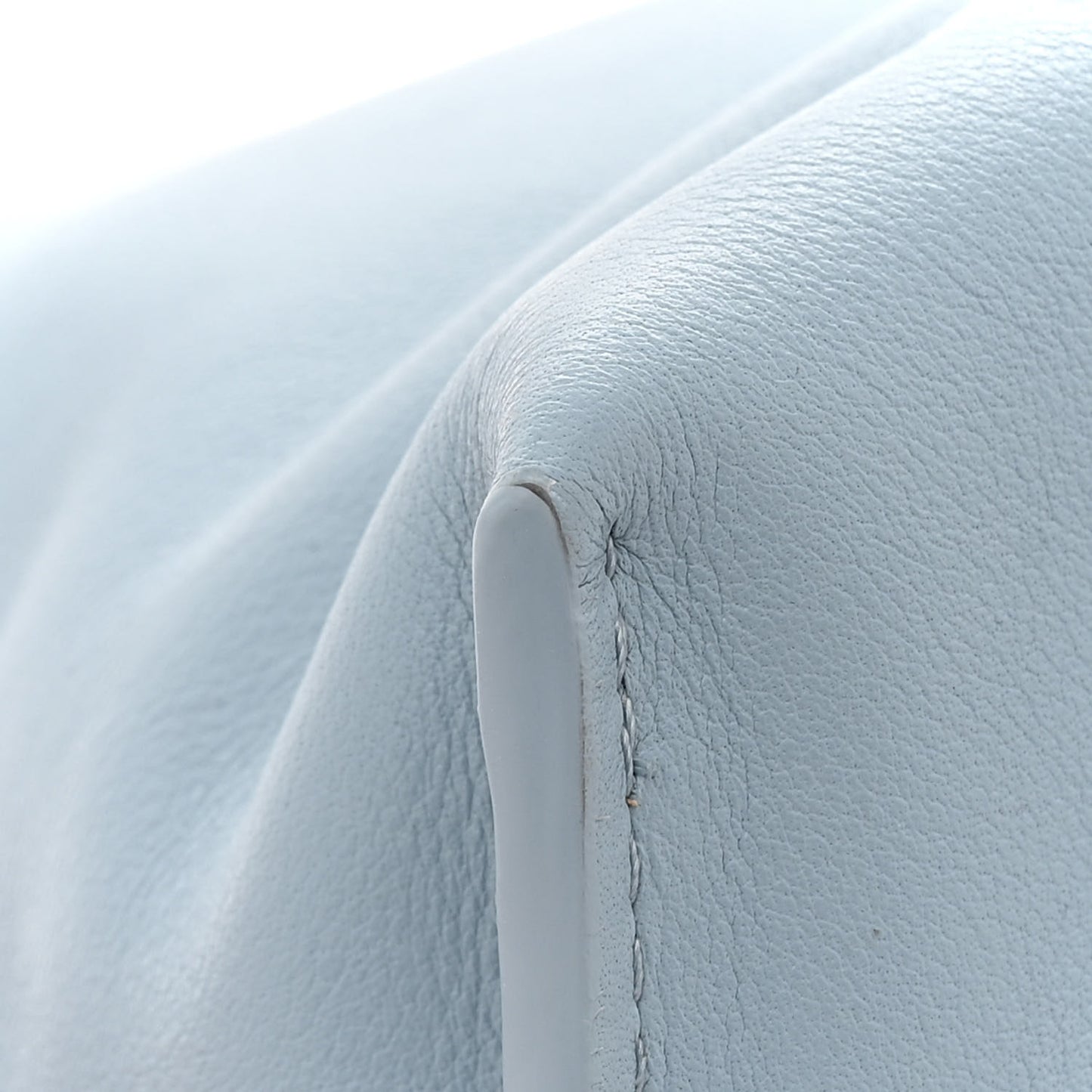 This is an authentic LOEWE Nappa Medium Flamenco Knot Bag in Dusty Blue. This stunning bag is crafted of smooth calfskin leather in light blue. The bag features a removable adjustable leather strap with polished silver hardware and a knotted drawstring. The top opens to a spacious brown suede interior.Follow this item for alerts. Loewe is a registered trademark of Loewe. FASHIONPHILE is not affiliated with Loewe.