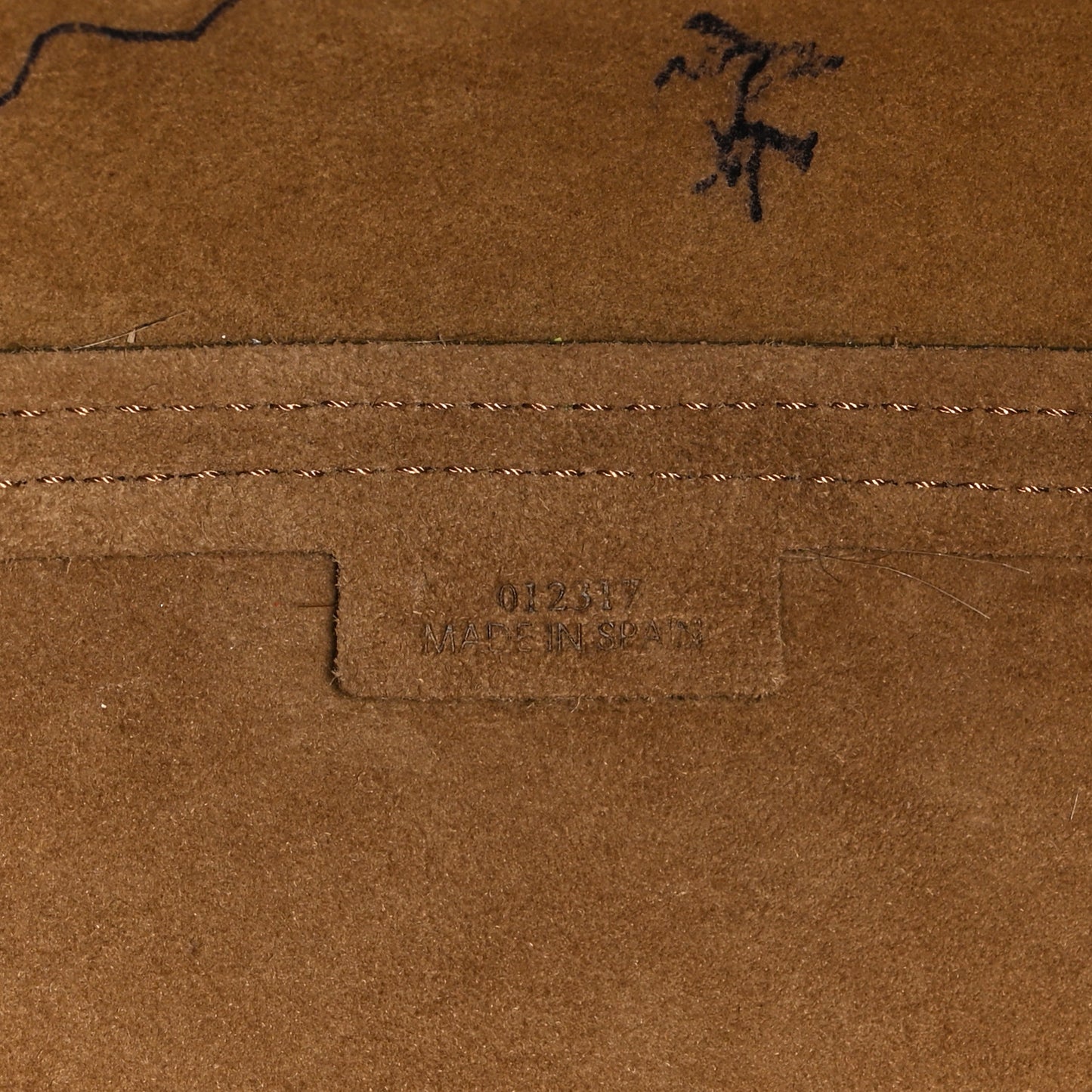 This is an authentic LOEWE Shiny Calfskin Medium Puzzle Fold Tote in Dark Khaki Green. This chic shoulder tote is crafted of a calfskin leather in dark olive green. It features leather handles and the ability to be folded flat. The bag has an top open and a beige suede interior.Follow this item for alerts. Loewe is a registered trademark of Loewe. FASHIONPHILE is not affiliated with Loewe.