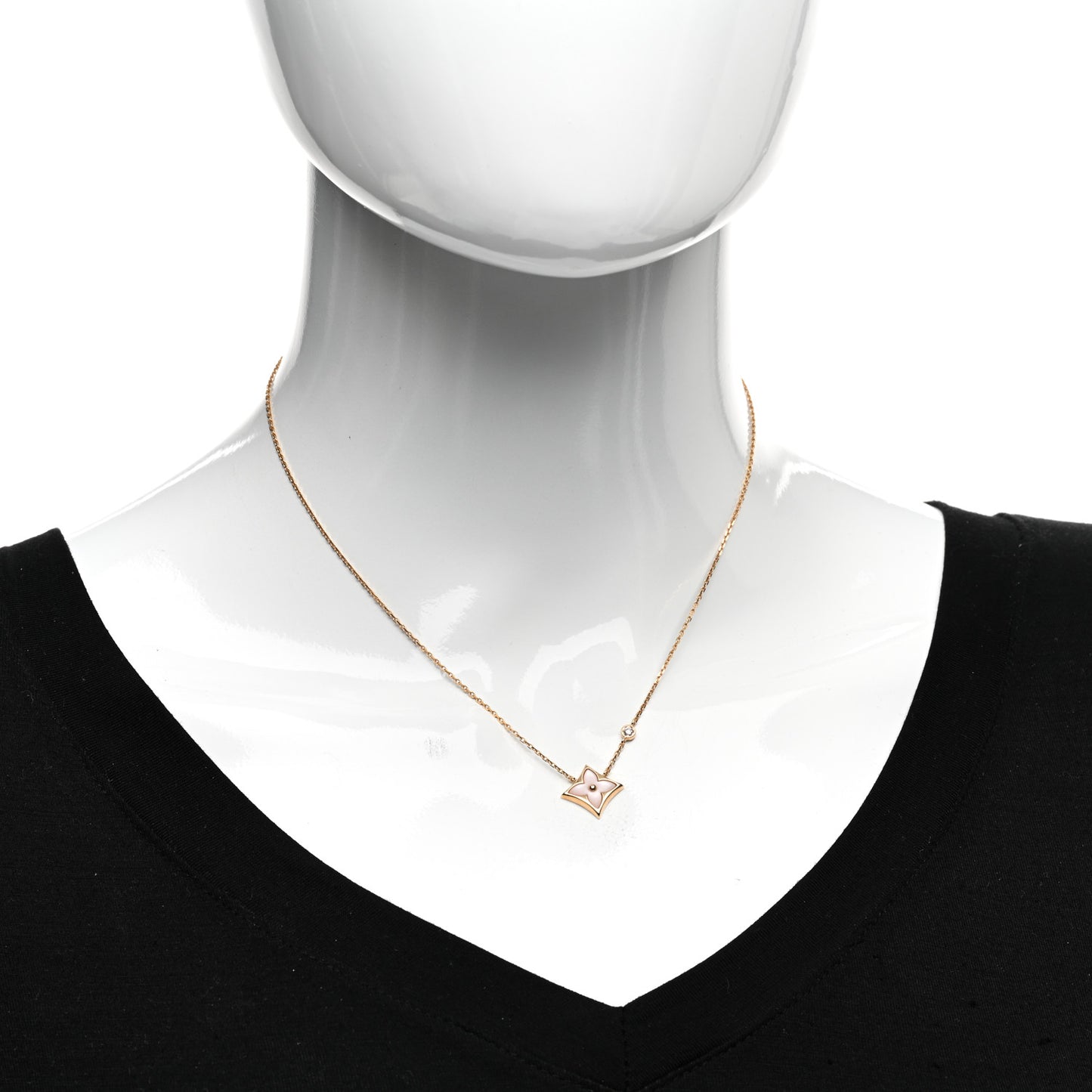 This is an authentic LOUIS VUITTON 18K Pink Gold Diamond Pink Mother of Pearl Color Blossom BB Star Pendant Necklace. The necklace is crafted of 18 karat pink gold and features an LV monogram pendant set with pink mother of pearl. The necklace also features a bezel set diamond along the chain weighing approximately .04 total carat weight.Follow this item for alerts. Louis Vuitton is a registered trademark of Louis Vuitton. FASHIONPHILE is not affiliated with Louis Vuitton.