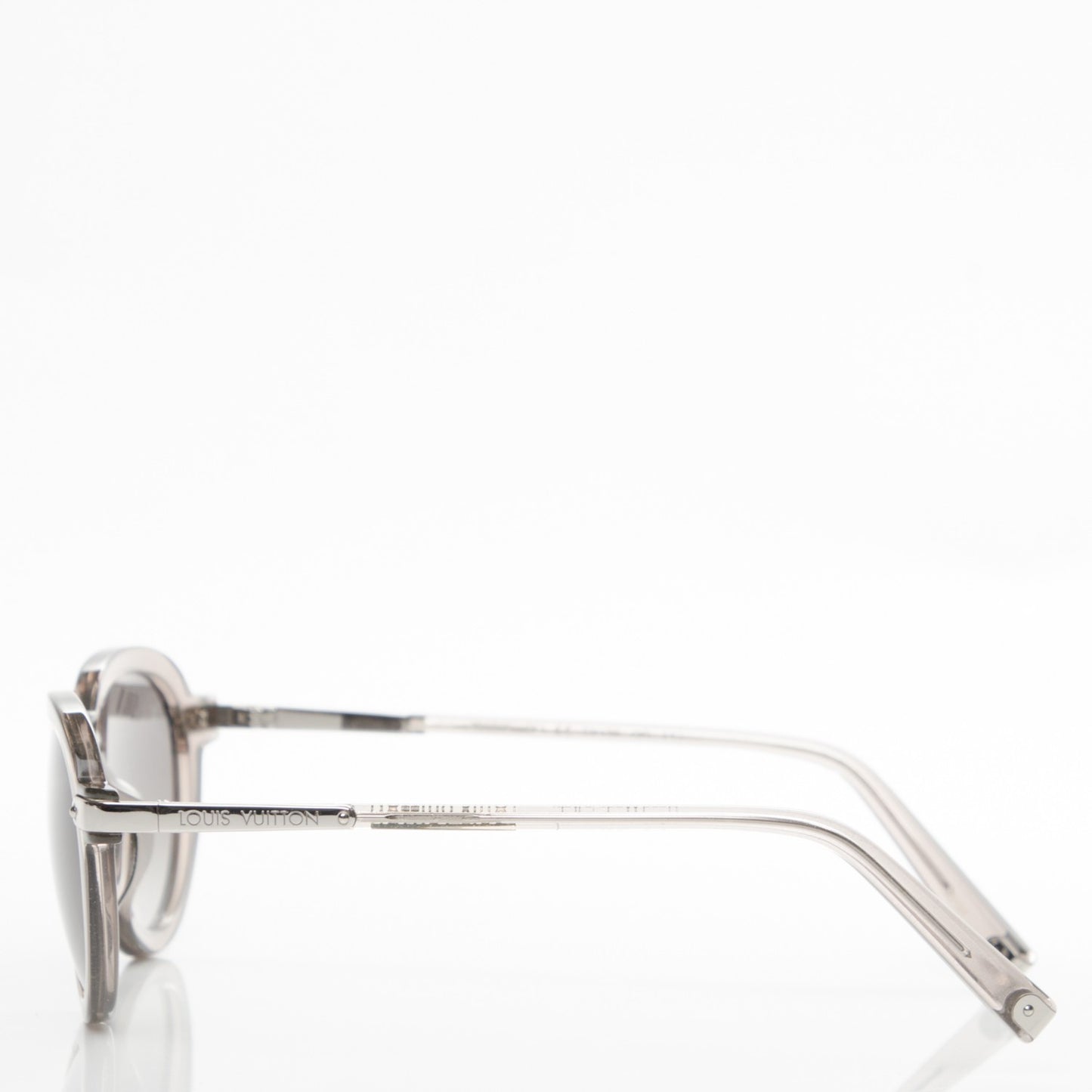 These are authentic LOUIS VUITTON Berry Sunglasses Z00636E in Pearl Glitter. These stunning sunglasses have a grey glittered semi-translucent frame with rounded rims. The lenses are a solid grey and the arms have a silver inlay of Louis Vuitton for everyday wear and the luxury and style only from Louis Vuitton!Follow this item for alerts. Louis Vuitton is a registered trademark of Louis Vuitton. FASHIONPHILE is not affiliated with Louis Vuitton.