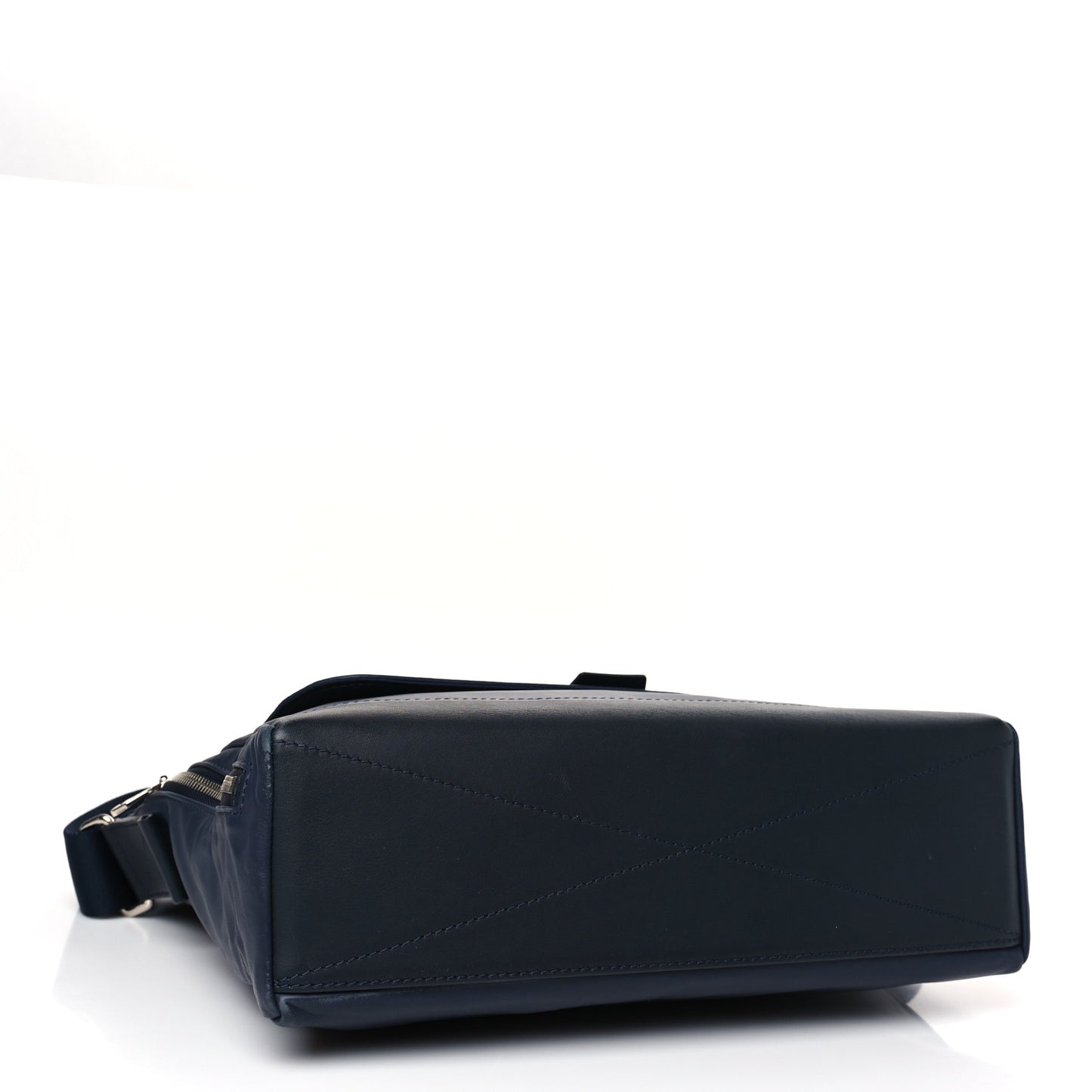 This is an authentic LOUIS VUITTON Calfskin Cross V Messenger in Navy. This sophisticated soft structured bag has clean lines and the relaxed flair of an urban messenger bag. It is crafted of rich water-repellent calfskin leather in dark blue with a top zipper and flap and a shoulder strap. The top zipper opens to a navy nylon fabric lining with a zipper and patch pockets.
