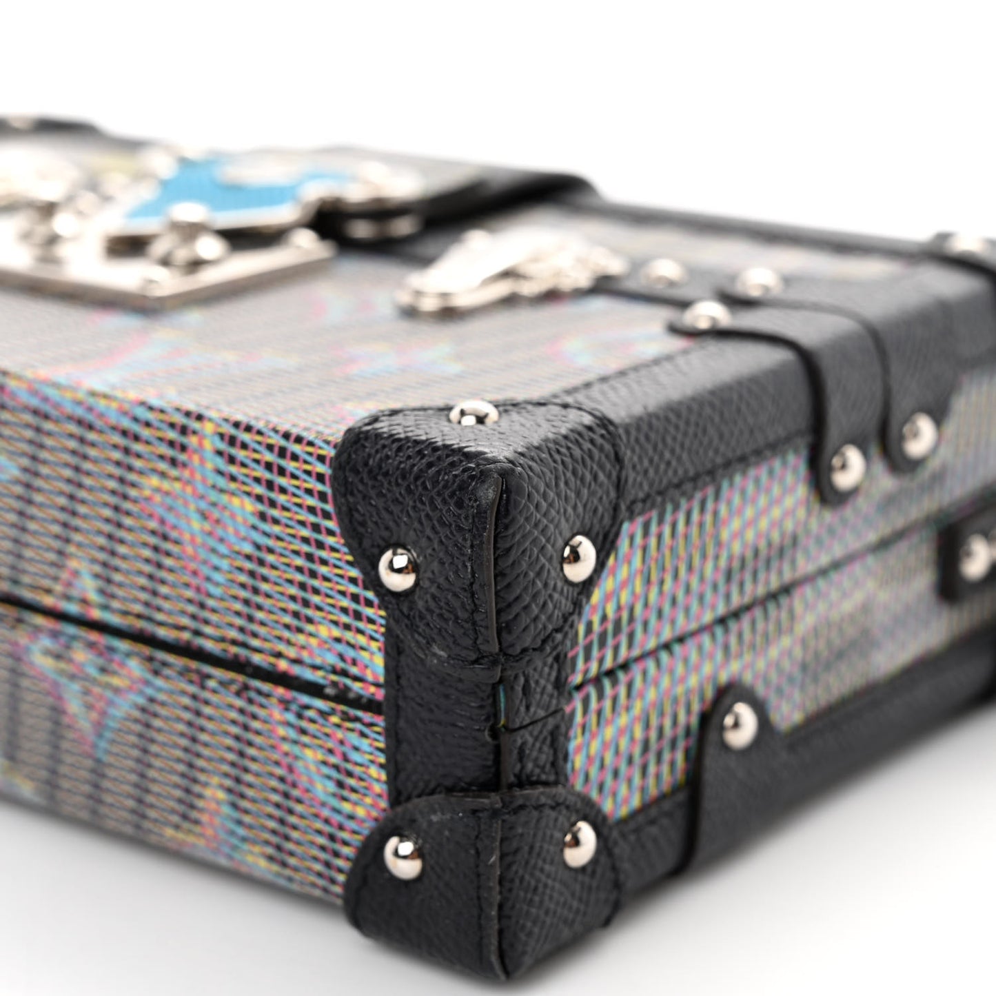 This is an authentic LOUIS VUITTON Calfskin Monogram LV Pop Petite Malle in Blue. This stylish trunk style shoulder bag is crafted of Louis Vuitton calfskin in blue with multicolor design. The bag features an optional blue leather shoulder strap, blue leather corners, silver studs, and silver hardware. The crossover strap opens to a beige leather interior with a pocket.Follow this item for alerts. Louis Vuitton is a registered trademark of Louis Vuitton. FASHIONPHILE is not affiliated with Louis Vuitton.