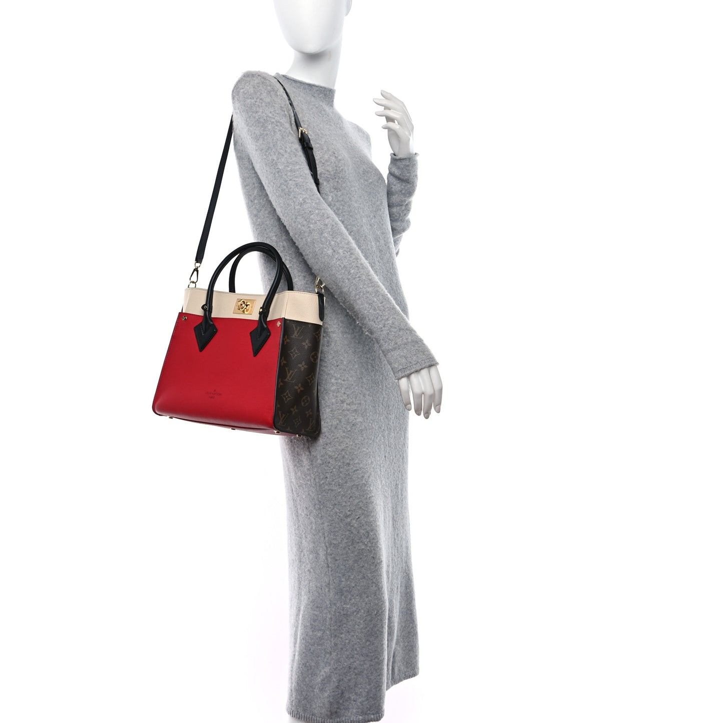This is an authentic LOUIS VUITTON Calfskin Monogram On My Side in Pirate Red. This tote is crafted of an elegant combination of small grained calfskin leather in red and off white and monogram canvas. The shoulder bag features rolled black leather top handles with an optional shoulder strap, and large outside pockets in contrasting canvas create a bag-in-a-bag look. The top opens to a beige microfiber interior with zippered and patch pockets.Follow this item for alerts. Louis Vuitton is a registered trademark of Louis Vuitton. FASHIONPHILE is not affiliated with Louis Vuitton.