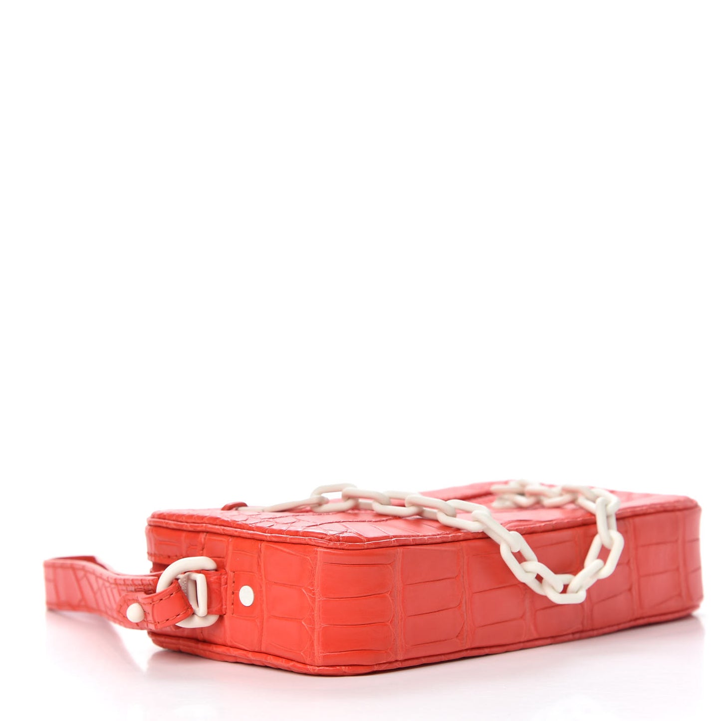 This is an authentic LOUIS VUITTON Crocodile Pochette Volga in Red. This chic pouch from Virgil Abloh's collection is featured in classic Louis Vuitton crocodile-embossed leather in red. The pochette features a red wristlet strap and a front zipper pocket with matte white chain links. The top zipper opens to a red leather interior with a patch pocket and card slots.Follow this item for alerts. Louis Vuitton is a registered trademark of Louis Vuitton. FASHIONPHILE is not affiliated with Louis Vuitton.