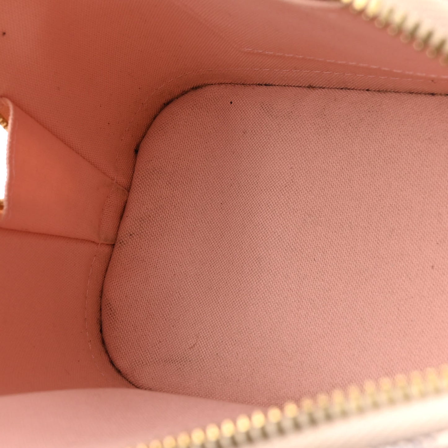 This is an authentic LOUIS VUITTON Damier Azur Braided Alma BB. This mini bowling-style handbag is crafted of Louis Vuitton's signature Damier coated canvas in white and blue. The bag features beautiful white cowhide leather trim including a solid base, pink and brown woven leather top handles, and an optional shoulder strap with brass hardware. The wrap-around zippers open to a pink fabric interior with a patch pocket.Follow this item for alerts. Louis Vuitton is a registered trademark of Louis Vuitton. FASHIONPHILE is not affiliated with Louis Vuitton.