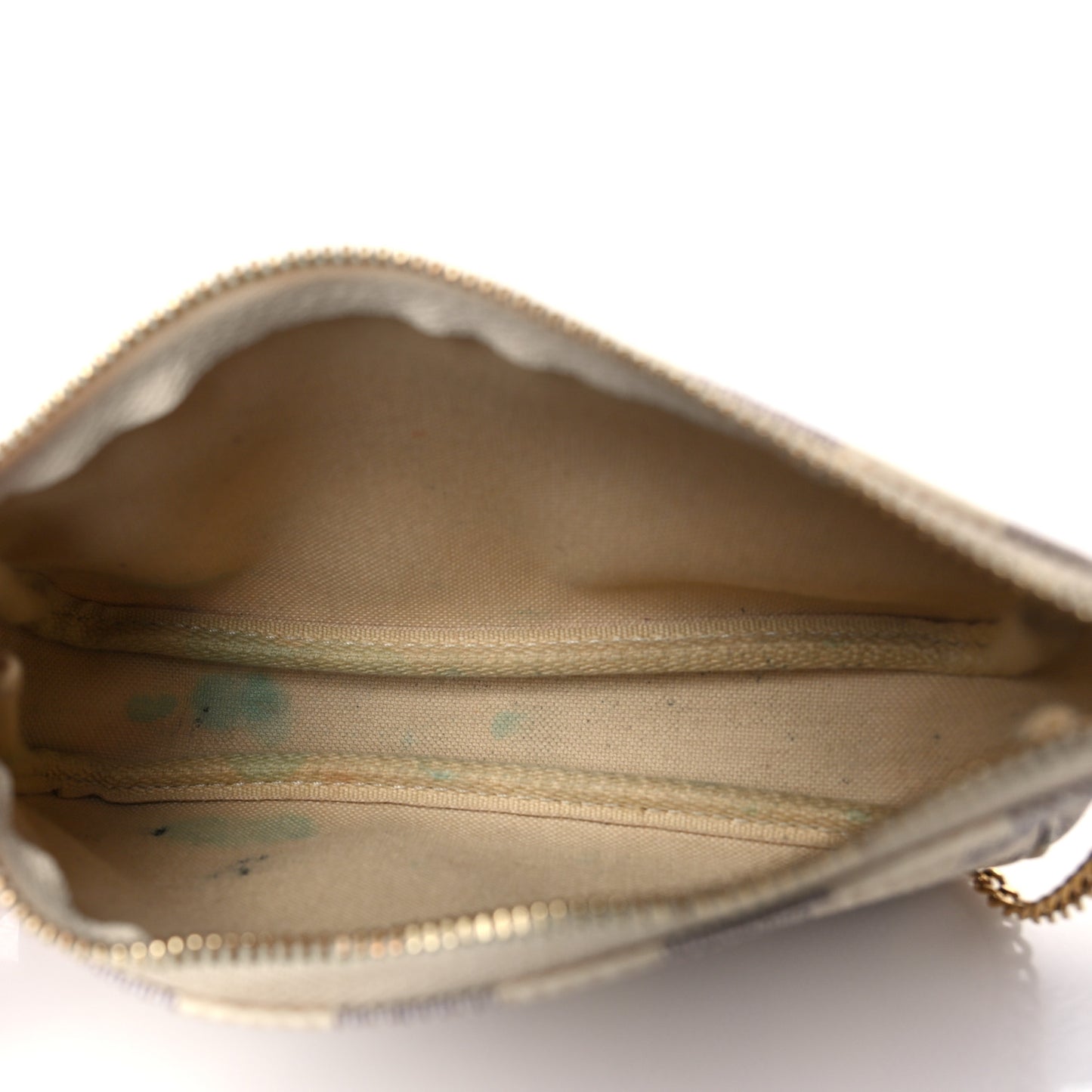 This is an authentic LOUIS VUITTON Damier Azur Mini Pochette Accessories. This stylish small pochette is crafted of Louis Vuitton signature damier azur check coated canvas. The bag features a polished gold wristlet and a top zipper that opens to an ivory fabric interior.Follow this item for alerts. Louis Vuitton is a registered trademark of Louis Vuitton. FASHIONPHILE is not affiliated with Louis Vuitton.