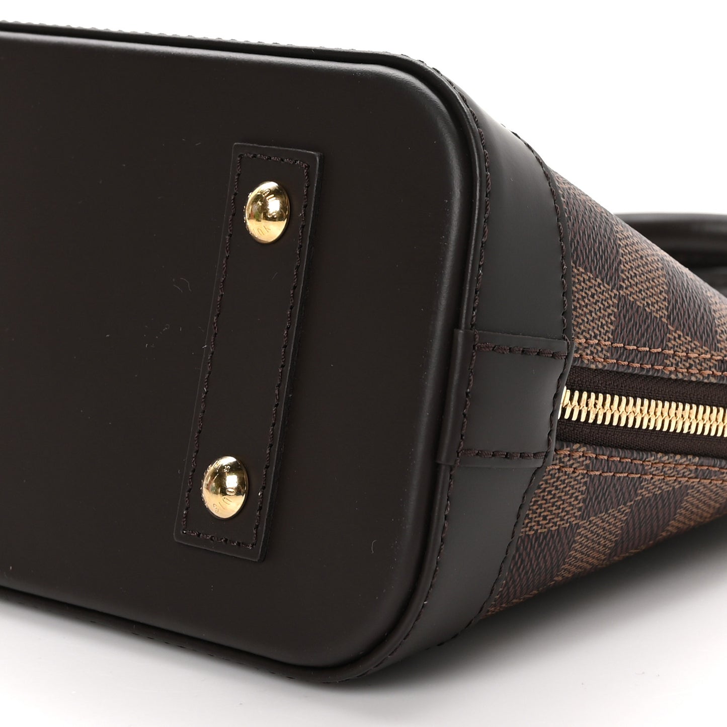 This is an authentic LOUIS VUITTON Damier Ebene Alma BB. This mini bowling-style handbag is crafted of Louis Vuitton's signature Damier coated canvas in brown. The bag features beautiful brown cowhide leather trim including a solid base, and rolled top handles with brass hardware. The wrap-around zippers open to a red fabric interior with a patch pocket.Follow this item for alerts. Louis Vuitton is a registered trademark of Louis Vuitton. FASHIONPHILE is not affiliated with Louis Vuitton.