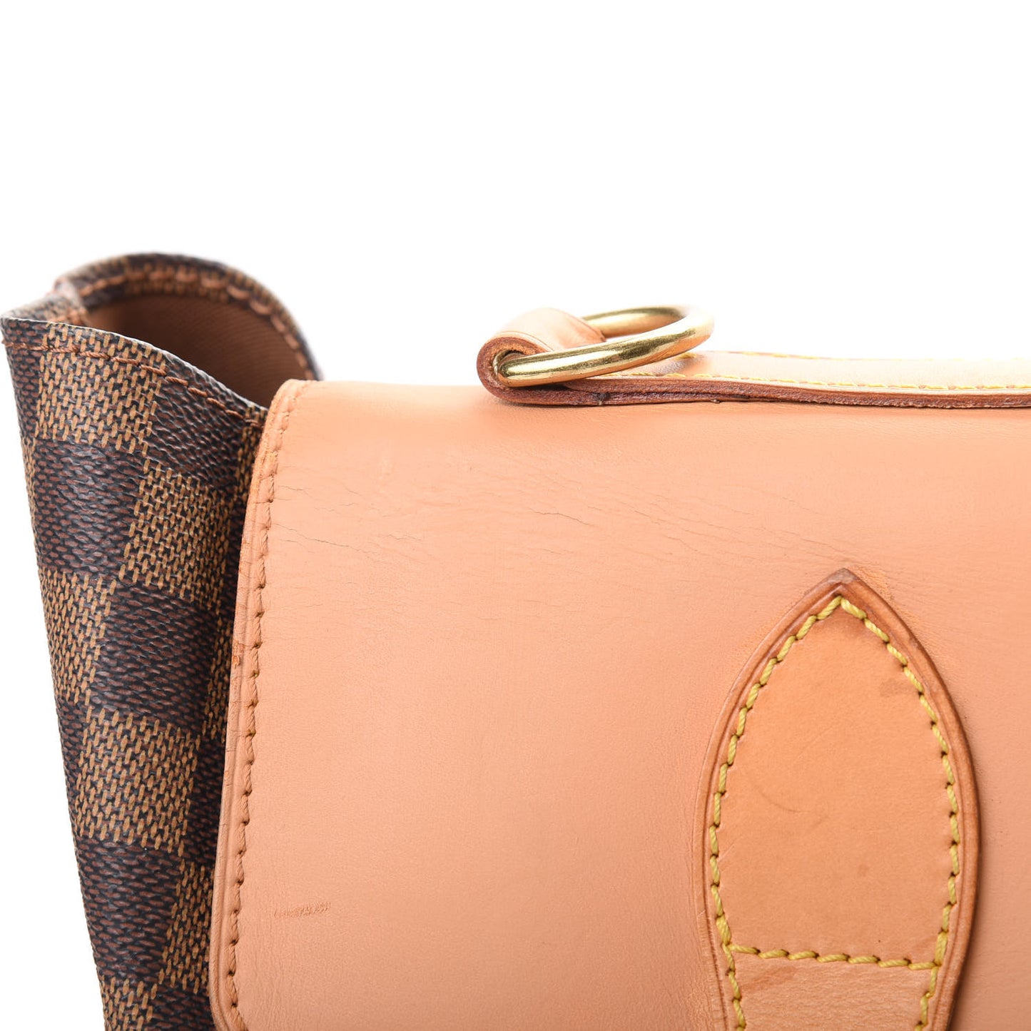 This is an authentic LOUIS VUITTON Damier Ebene Centenaire West End PM. This circa 1996 stylish travel bag is crafted of Louis Vuitton Damier check toile canvas in brown. The bag features extensive vachetta cowhide leather embellishment including a sturdy top handle with brass links, wide trim around the base, and a crossover flap that secures with belts and buckles. These open to a spacious cocoa brown fabric interior with a side zippered pocket.Follow this item for alerts. Louis Vuitton is a registered trademark of Louis Vuitton. FASHIONPHILE is not affiliated with Louis Vuitton.
