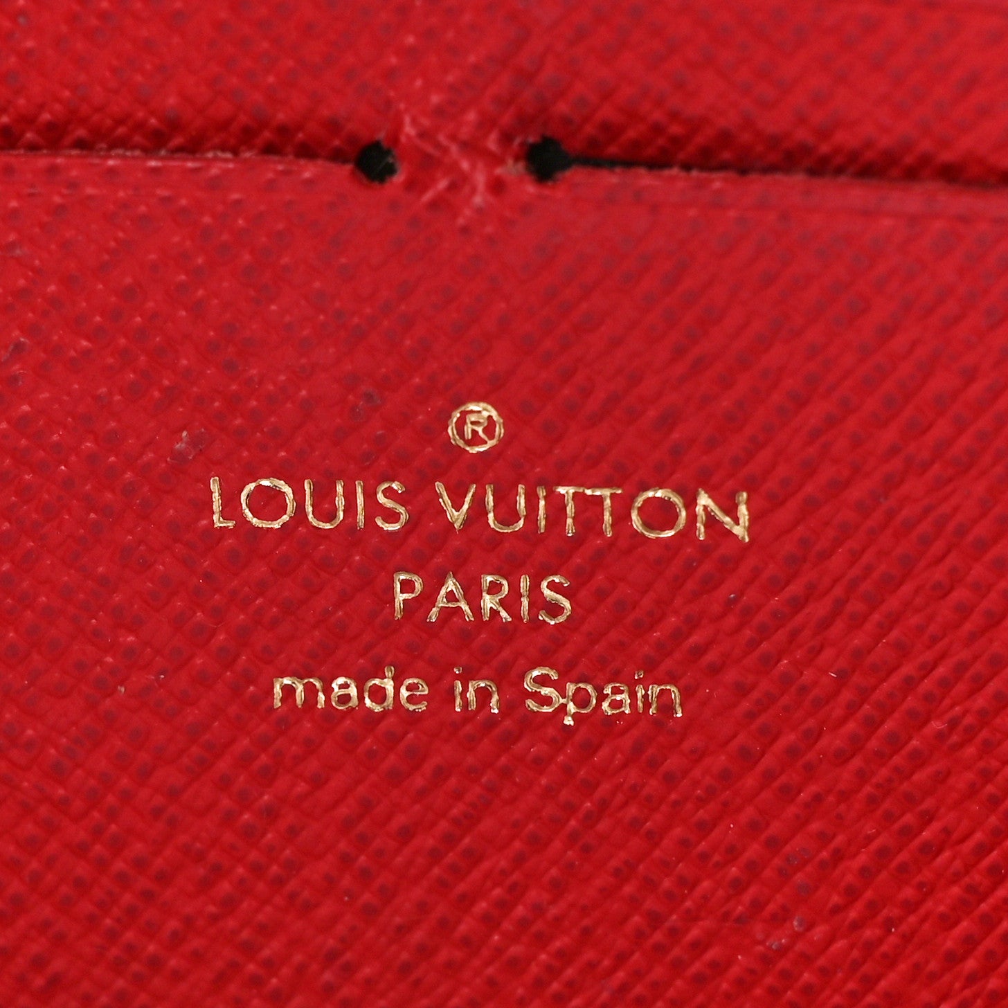 This is an authentic LOUIS VUITTON Damier Ebene Clemence Wallet in Cherry. This stylish wallet is constructed of traditional damier ebene toile canvas. The 3/4 wrap-around gold zipper and cherry leather pull tab open to a partitioned interior in vibrant red cross-grain leather, featuring two red leather card slot panels, patch pockets, and a central damier ebene zipper coin compartment.Follow this item for alerts. Louis Vuitton is a registered trademark of Louis Vuitton. FASHIONPHILE is not affiliated with Louis Vuitton.