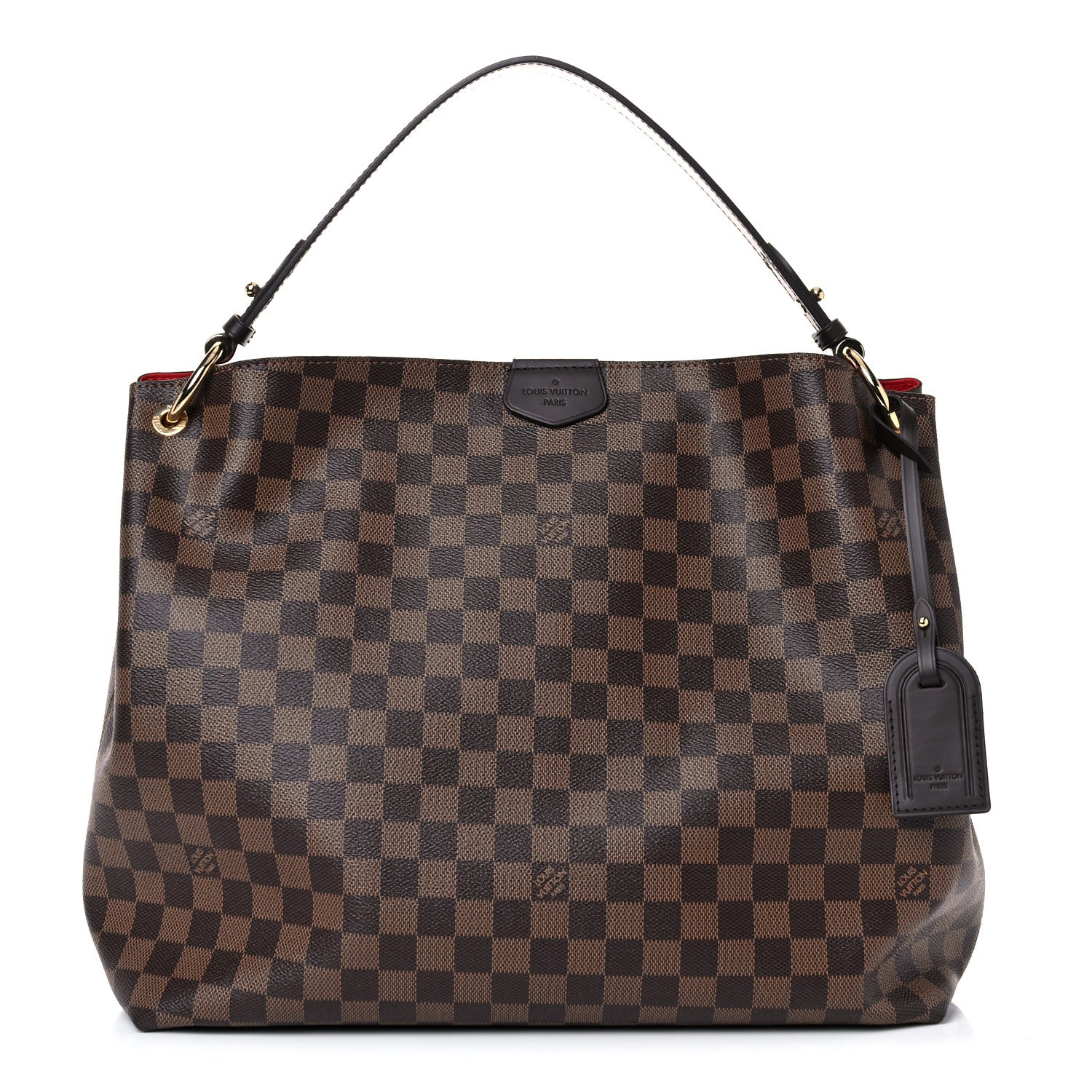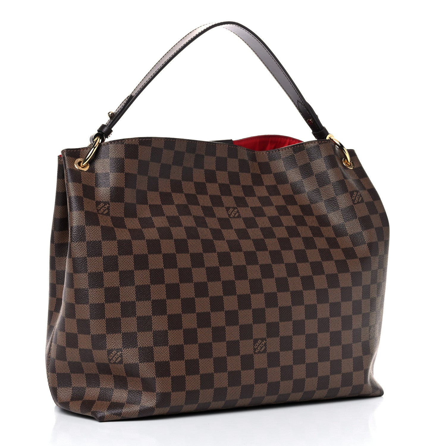 This is an authentic LOUIS VUITTON Damier Ebene Graceful MM. This stylish shoulder bag is finely crafted of Louis Vuitton signature damier canvas in brown. The shoulder bag features a flat chocolate brown leather shoulder strap with polished brass hardware, and a magnetic leather closure. This opens to a spacious rouge red fabric interior with a pocket.Follow this item for alerts. Louis Vuitton is a registered trademark of Louis Vuitton. FASHIONPHILE is not affiliated with Louis Vuitton.