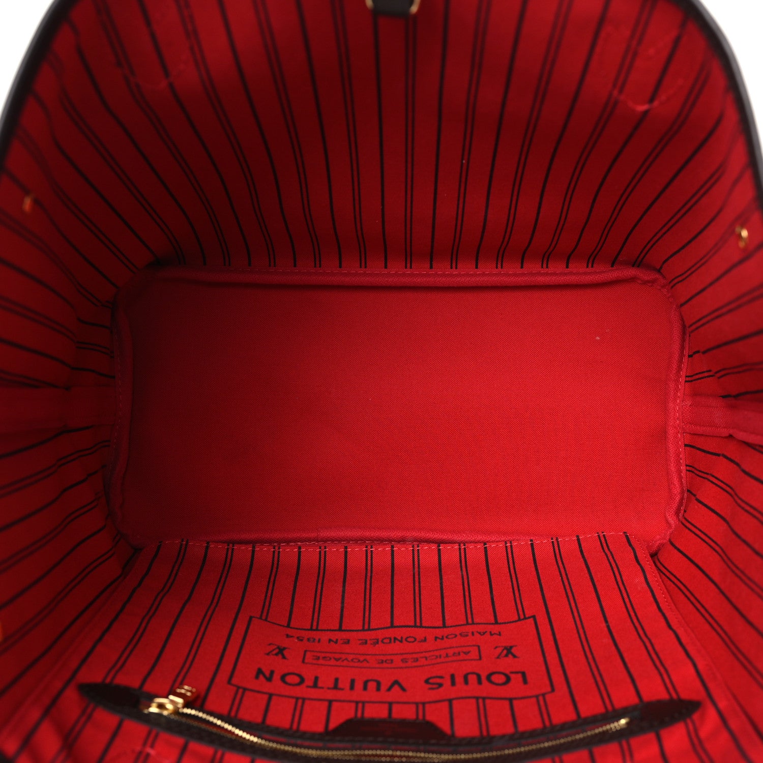 This is an authentic LOUIS VUITTON Damier Ebene Neo Neverfull MM. This chic tote is crafted of classic Louis Vuitton Damier in brown on coated canvas. The shoulder bag features chocolate brown cowhide leather trim, shoulder straps, side cinch cords, and has polished brass hardware. The top is open to a striped red fabric interior with a hanging zipper pocket and matching pochette.Follow this item for alerts. Louis Vuitton is a registered trademark of Louis Vuitton. FASHIONPHILE is not affiliated with Louis Vuitton.