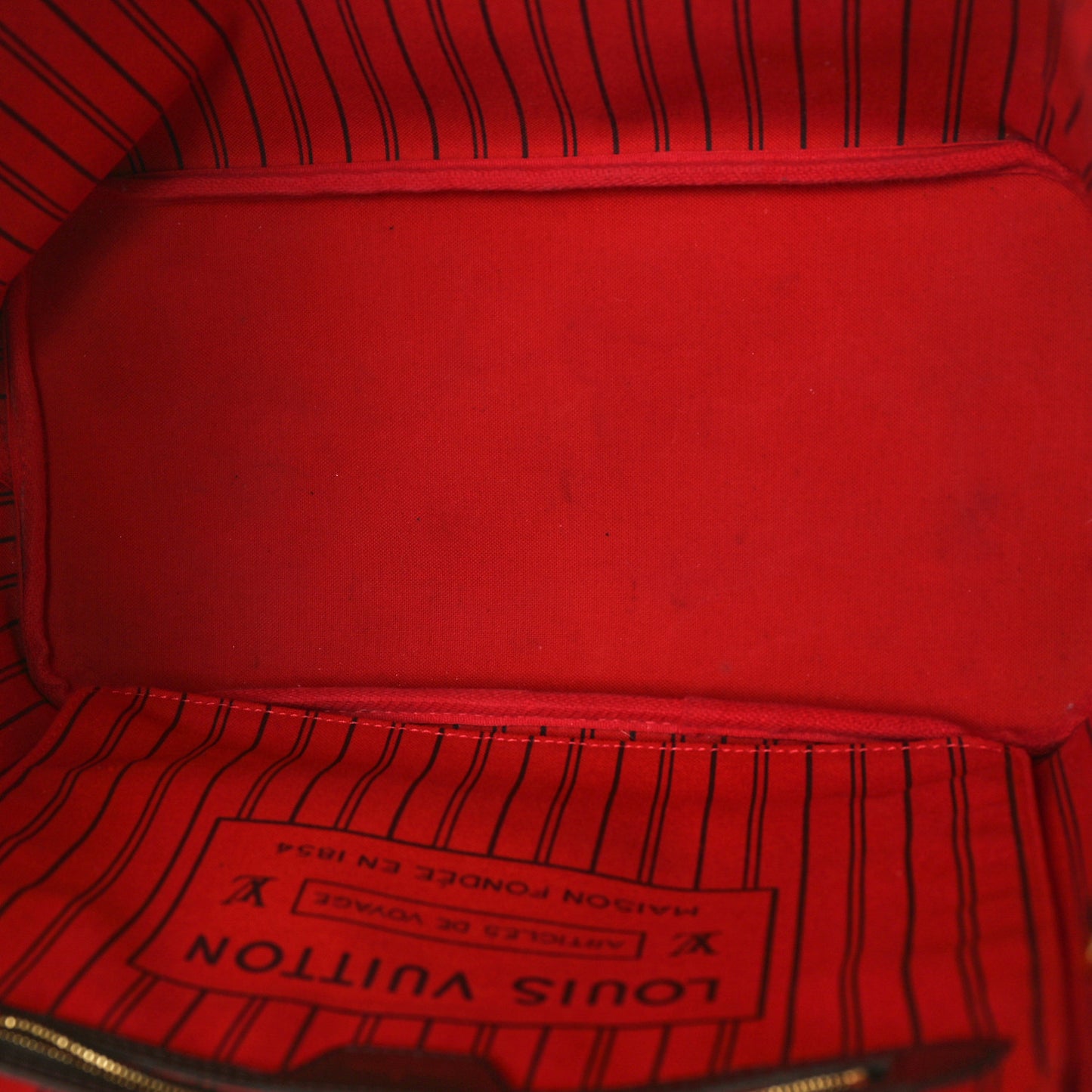 This is an authentic LOUIS VUITTON Damier Ebene Neo Neverfull MM. This chic tote is crafted of classic Louis Vuitton Damier in brown on coated canvas. The shoulder bag features chocolate brown cowhide leather trim, shoulder straps, side cinch cords, and has polished brass hardware. The top is open to a striped red fabric interior with a hanging zipper pocket.Follow this item for alerts. Louis Vuitton is a registered trademark of Louis Vuitton. FASHIONPHILE is not affiliated with Louis Vuitton.