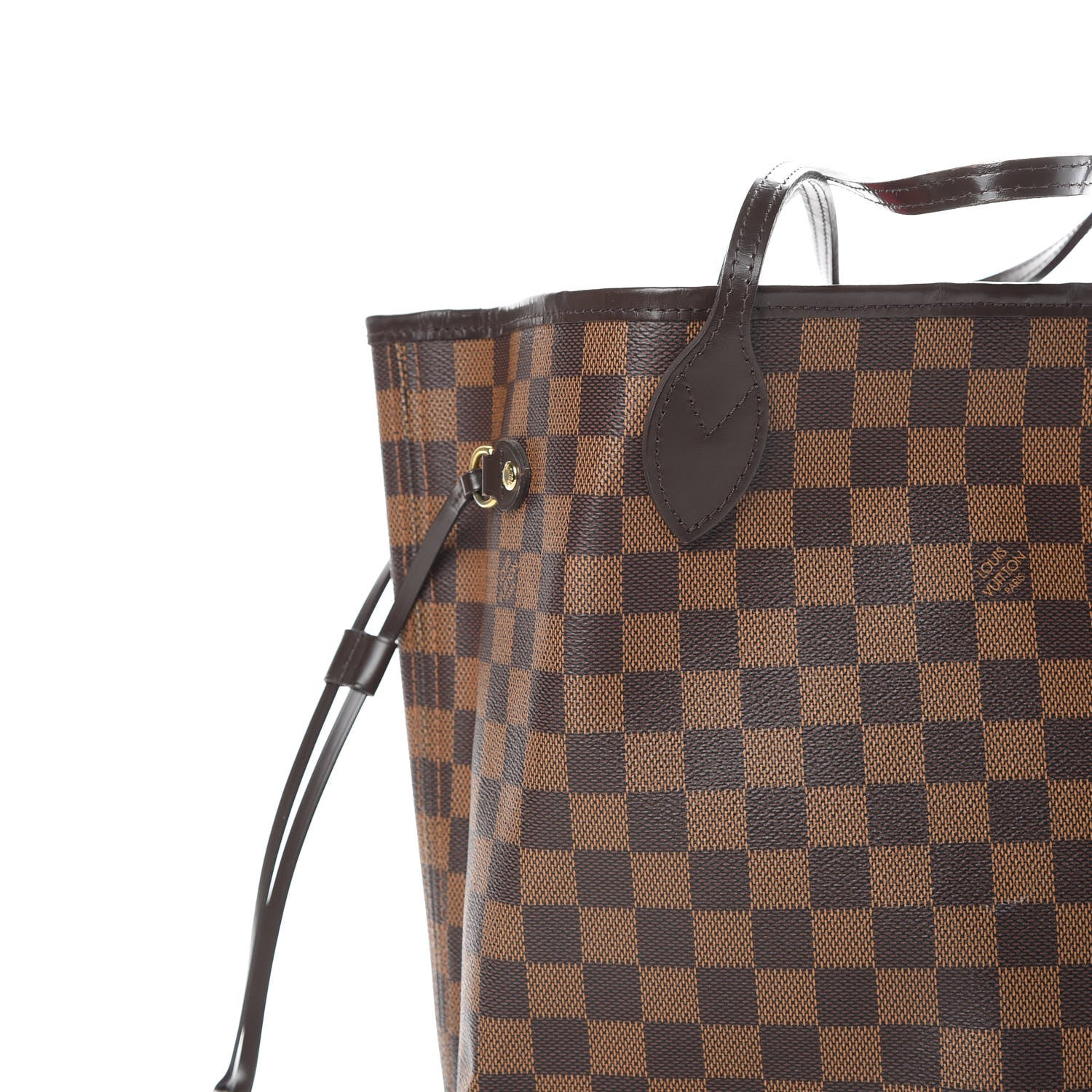 This is an authentic LOUIS VUITTON Damier Ebene Neo Neverfull MM. This stylish shoulder bag is crafted of Louis Vuitton's signature checked Damier canvas in brown. This bag features chocolate brown leather trim and tall strap handles with polished brass hardware. The top is open to a red striped interior with a hanging zipper pocket.Follow this item for alerts. Louis Vuitton is a registered trademark of Louis Vuitton. FASHIONPHILE is not affiliated with Louis Vuitton.
