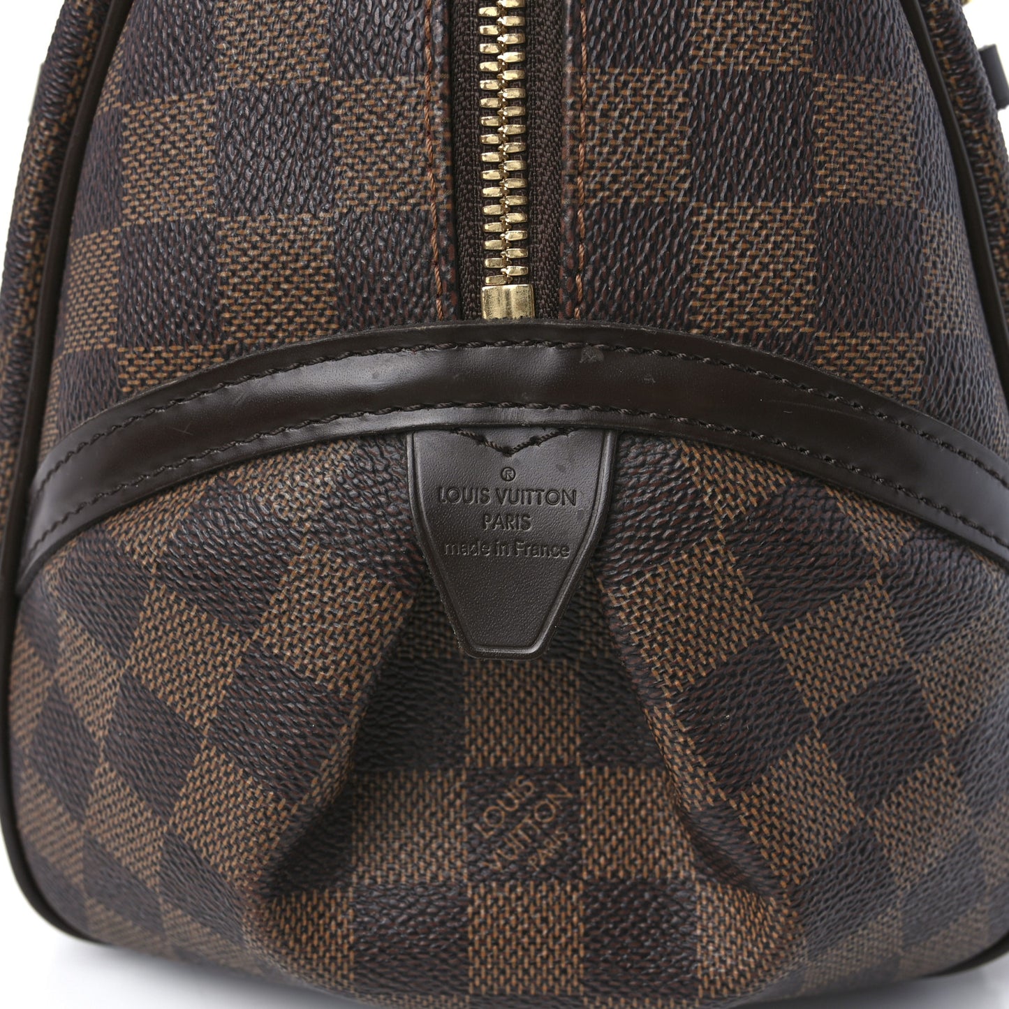 This is an authentic LOUIS VUITTON Damier Ebene Rivington GM. This is a distinctive and attractive shoulder bag crafted of Louis Vuitton Damier Ebene check patterned toile canvas. The handbag features chocolate brown cowhide leather including leather strap handles with brass links, belt anchors, and trim. The bag has a wrap around double gold zipper that opens to an interior of rouge red fabric with a hanging patch pocket.Follow this item for alerts. Louis Vuitton is a registered trademark of Louis Vuitton. FASHIONPHILE is not affiliated with Louis Vuitton.