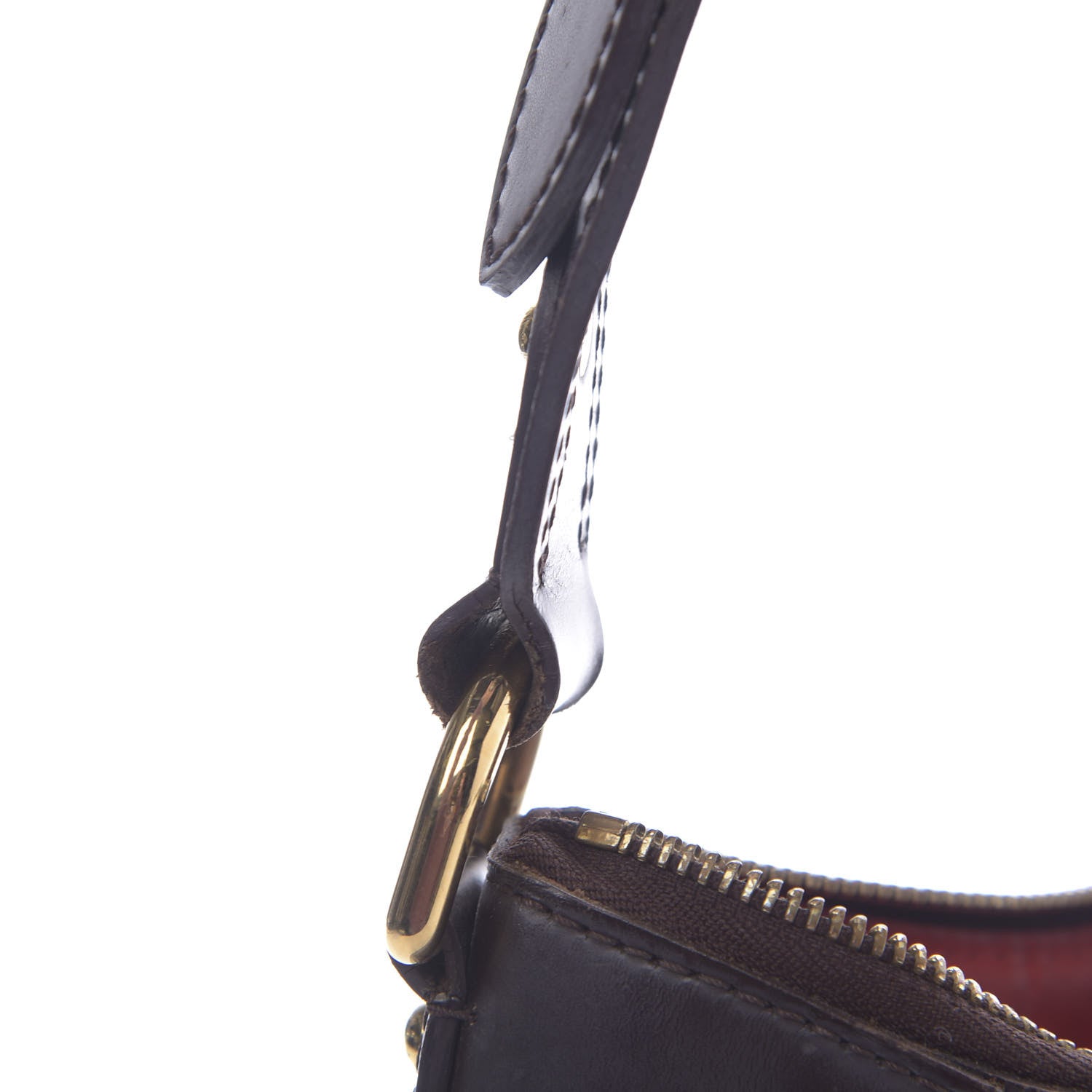 This is an authentic LOUIS VUITTON Damier Ebene Thames PM. This stylish bag is crafted from signature Damier brown checkered coated canvas with a brass Louis Vuitton Inventeur plate on the front. This bag features brown leather piping trim, an adjustable shoulder strap, and brass hardware. The top zipper opens to a rouge red fabric interior with patch pockets. This is an elegant everyday bag, by Louis Vuitton!Follow this item for alerts. Louis Vuitton is a registered trademark of Louis Vuitton. FASHIONPHILE is not affiliated with Louis Vuitton.