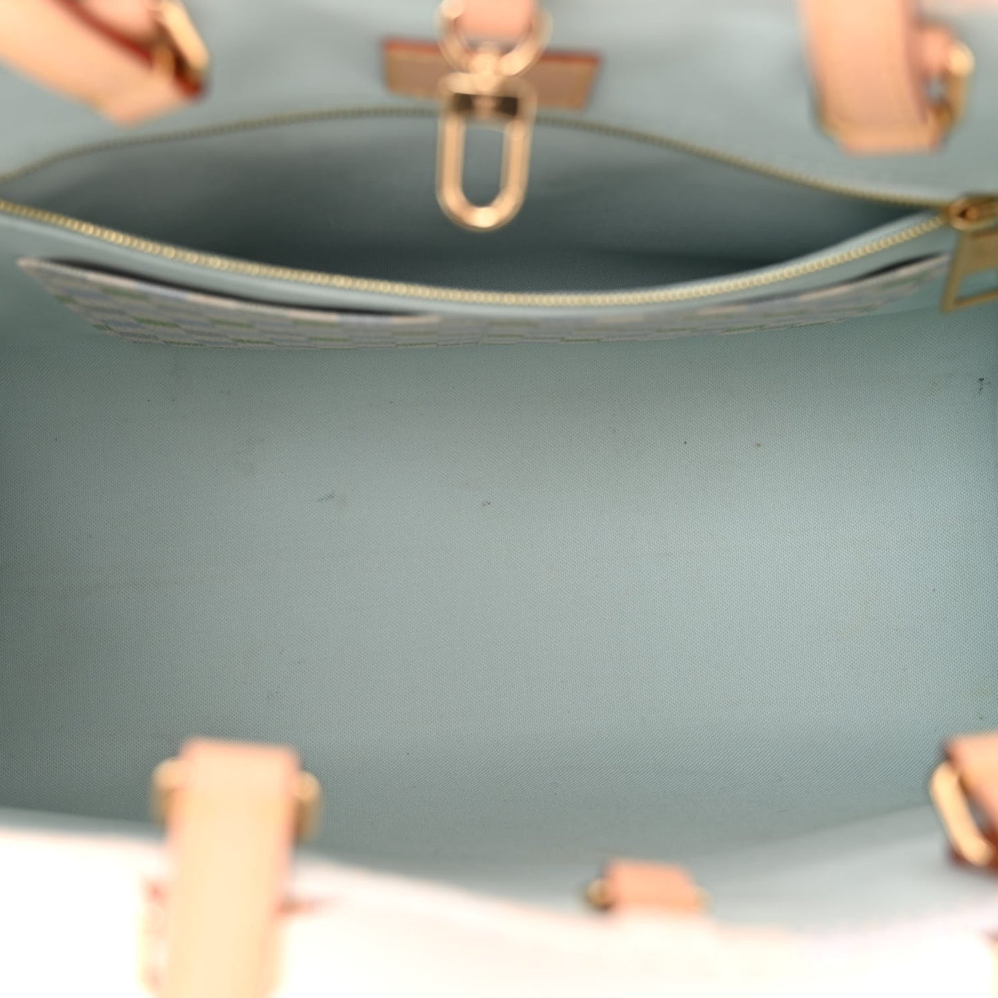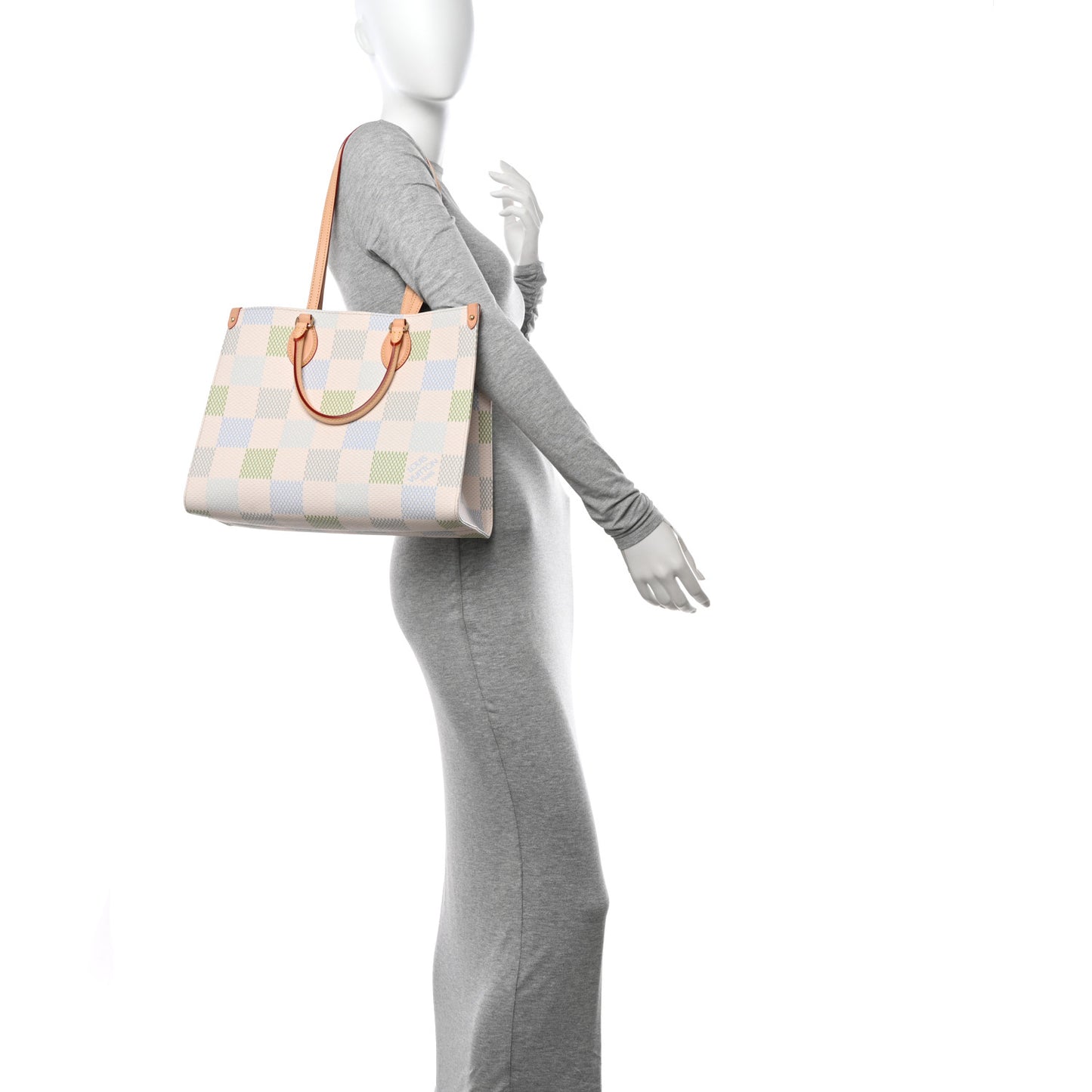 This is an authentic LOUIS VUITTON Damier Giant Onthego MM in Pistachio. This limited edition tote features oversized versions of the classic Louis Vuitton Damier with a multicolor detail. The bag features vachetta leather top handles and long strap handles. The top opens to a spacious light blue fabric interior with zipper and patch pockets.Follow this item for alerts. Louis Vuitton is a registered trademark of Louis Vuitton. FASHIONPHILE is not affiliated with Louis Vuitton.