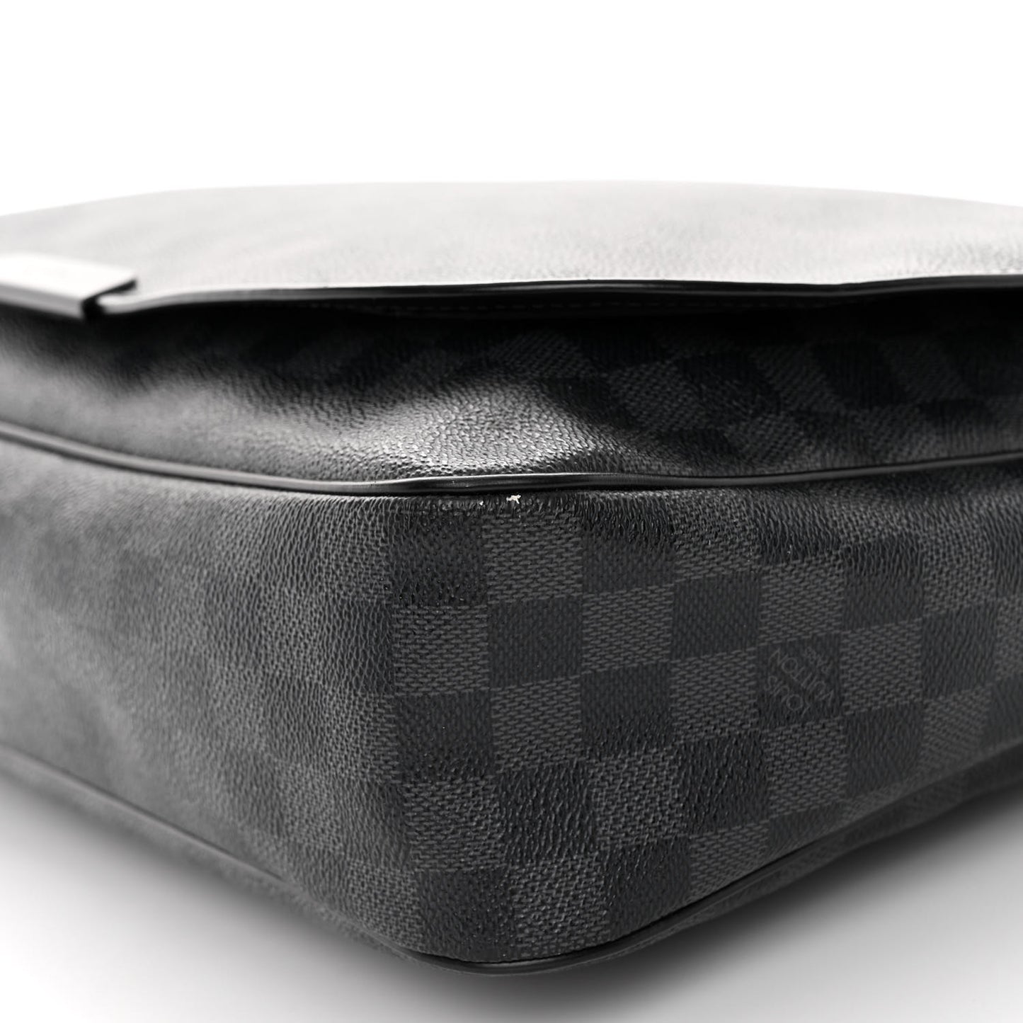 This is an authentic LOUIS VUITTON Damier Graphite Daniel GM. This messenger bag is finely crafted of Louis Vuitton damier check canvas in gray on black. This shoulder bag features an adjustable shoulder strap, black leather trim with polished silver links, a gunmetal magnetic closure, external zipper pocket. The full front flap opens to a spacious black fabric interior with patch pockets and a cell phone pocket.Follow this item for alerts. Louis Vuitton is a registered trademark of Louis Vuitton. FASHIONPHILE is not affiliated with Louis Vuitton.