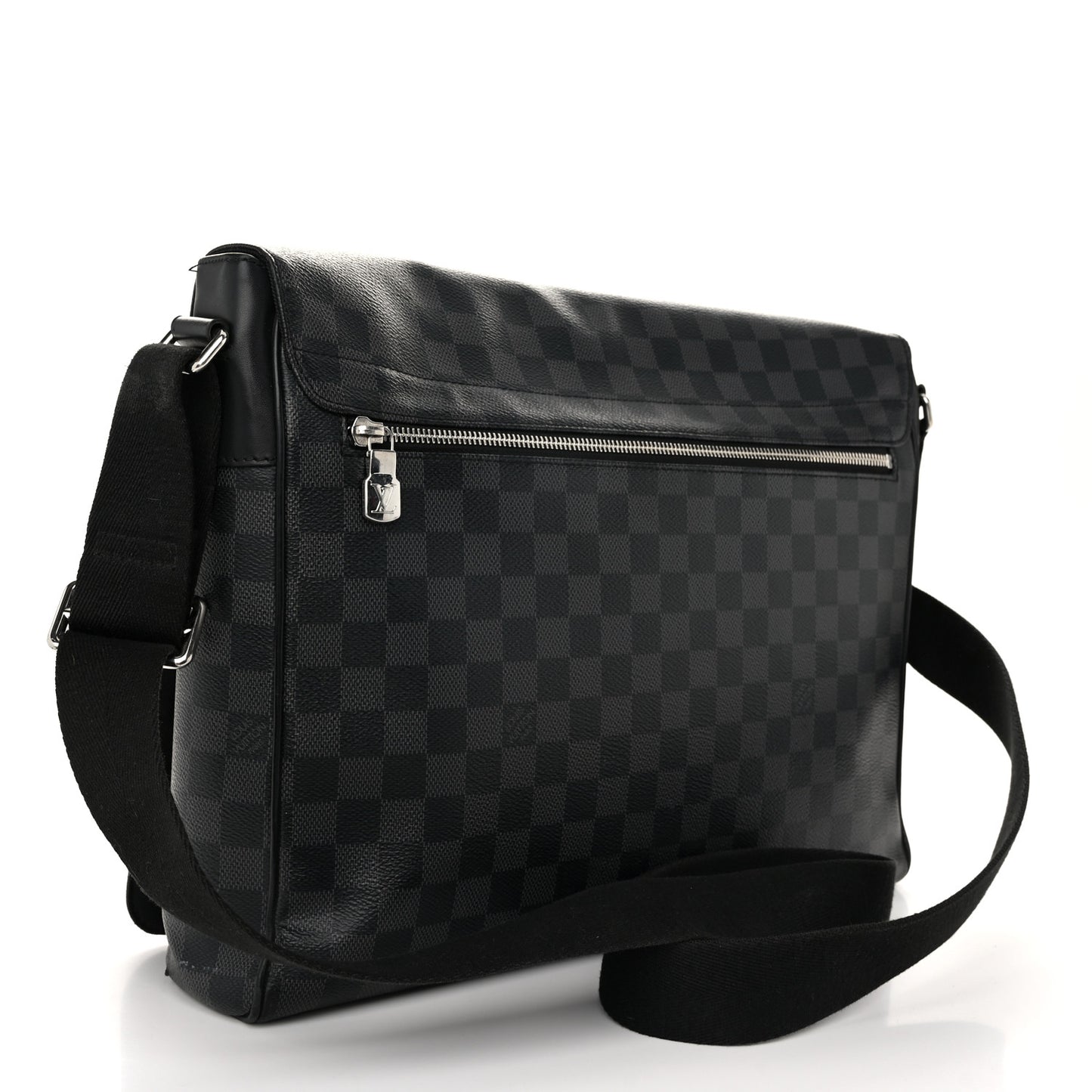 This is an authentic LOUIS VUITTON Damier Graphite District GM. This stylish messenger bag is created of signature Louis Vuitton Damier checkered coated canvas in grey. The bag features a rear zipper pocket, black nylon cross-body strap with silver adjustment hardware and links with a full facing flap. This opens to a spacious black fabric interior with patch pockets.Follow this item for alerts. Louis Vuitton is a registered trademark of Louis Vuitton. FASHIONPHILE is not affiliated with Louis Vuitton.
