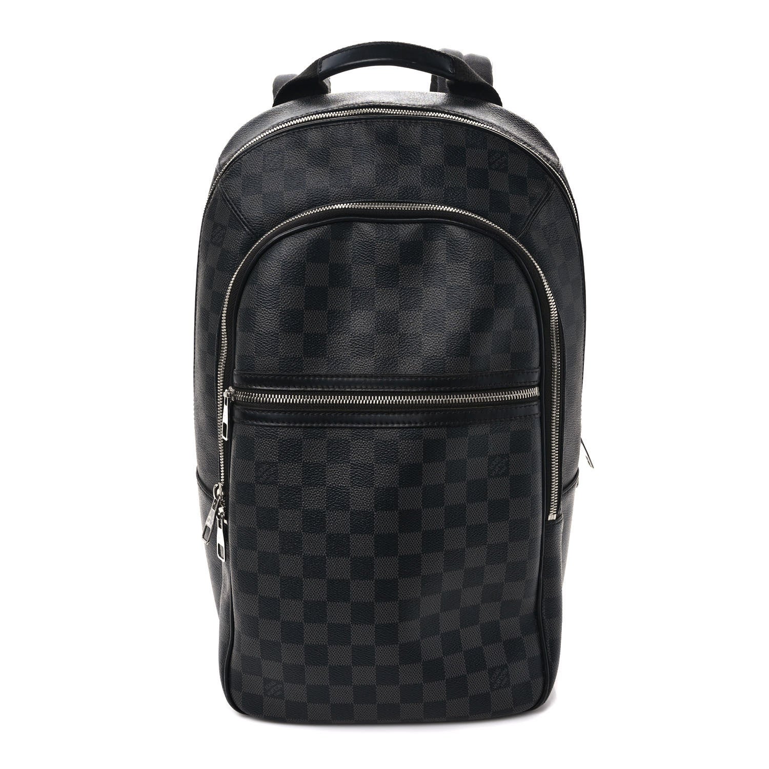 This is an authentic LOUIS VUITTON Damier Graphite Michael Backpack. This stylish backpack is crafted of Louis Vuitton signature damier gray check canvas. It features nylon shoulder straps, polished silver hardware, a front small zipper pocket and larger zipper compartments with patch pockets and pen holders. The main zipper compartment opens to a black fabric interior with a large flat pocket.Follow this item for alerts. Louis Vuitton is a registered trademark of Louis Vuitton. FASHIONPHILE is not affiliated with Louis Vuitton.