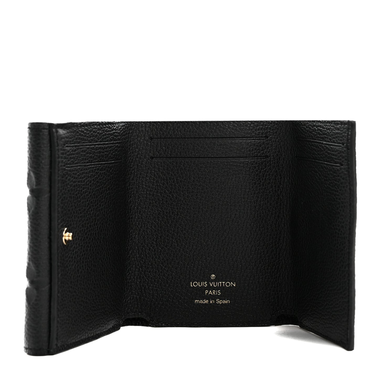 This is an authentic LOUIS VUITTON Empreinte Celeste Wallet in Black. This chic wallet is crafted of monogram-embossed calfskin leather in black. The wallet features a front flap that opens with a polished brass snap to a matching leather interior lined with card slots, billfold and a coin compartment.Follow this item for alerts. Louis Vuitton is a registered trademark of Louis Vuitton. FASHIONPHILE is not affiliated with Louis Vuitton.