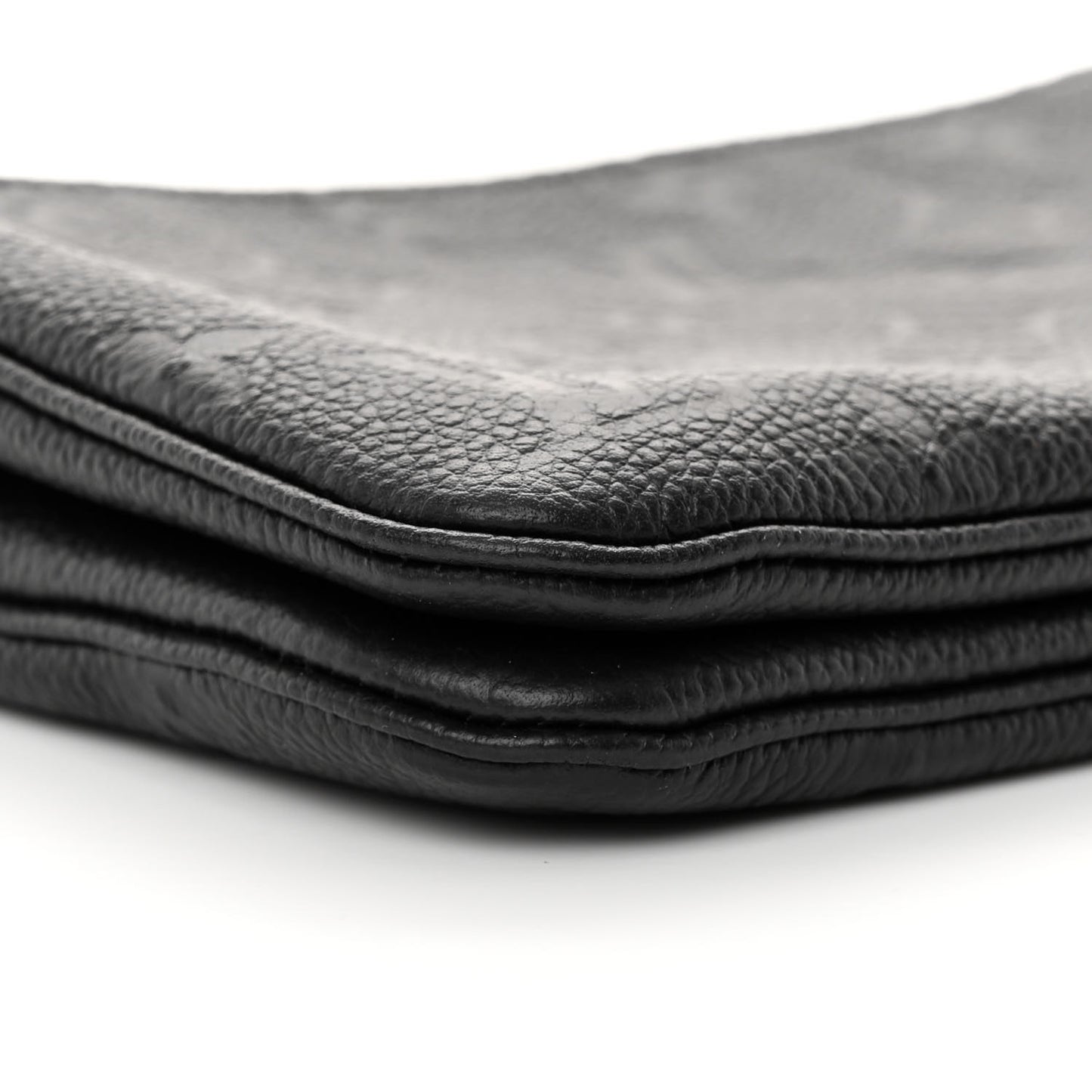 This is an authentic LOUIS VUITTON Empreinte Double Zip Pochette in Black. This stylish bag is crafted of Louis Vuitton monogram embossed calfskin leather in black. The bag features a gold chain strap, two zippered compartments, black microfiber-lined interior, and leather card slots.Follow this item for alerts. Louis Vuitton is a registered trademark of Louis Vuitton. FASHIONPHILE is not affiliated with Louis Vuitton.