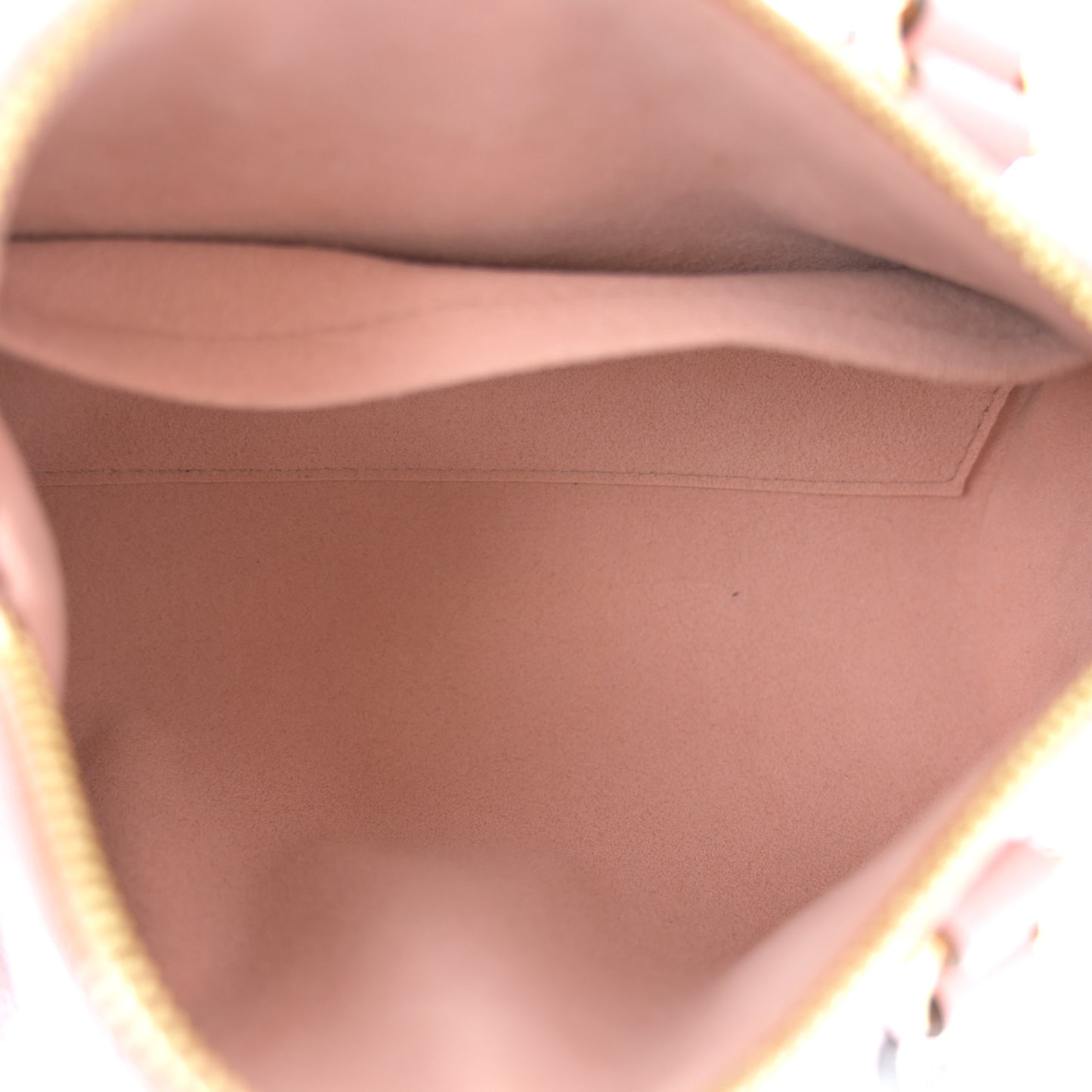 LOUIS VUITTON Empreinte Monogram Giant By The Pool Papillon BB in Bouton De Rose. This limited edition barrel-shaped bag is created of traditional Empreinte monogram leather in light pink. It features rolled leather top handles, an optional adjustable nylon shoulder strap with a coin purse, and gold hardware. The top zipper opens to a light pink microfiber lining with a flat pocket.Follow this item for alerts. Louis Vuitton is a registered trademark of Louis Vuitton. FASHIONPHILE is not affiliated with Louis Vuitton.