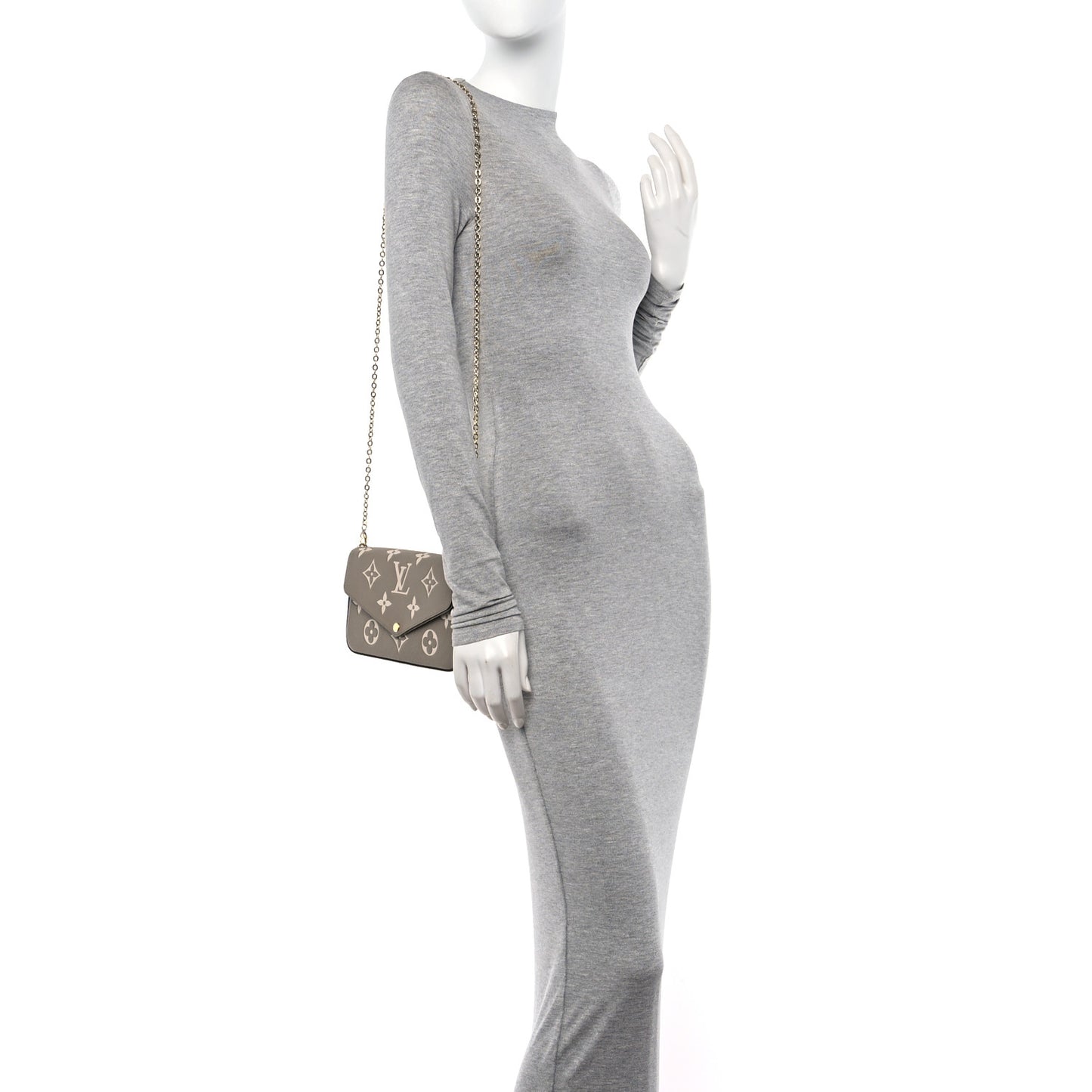 This is an authentic LOUIS VUITTON Empreinte Monogram Giant Felicie Pochette in Tourterelle and Creme. This stylish wallet is crafted of Louis Vuitton monogrammed Empreinte leather in taupe. This stylish shoulder bag features an optional brass chain-link shoulder strap and an envelope-style facing flap. This opens to a matching fabric interior with two removable inserts.Follow this item for alerts. Louis Vuitton is a registered trademark of Louis Vuitton. FASHIONPHILE is not affiliated with Louis Vuitton.