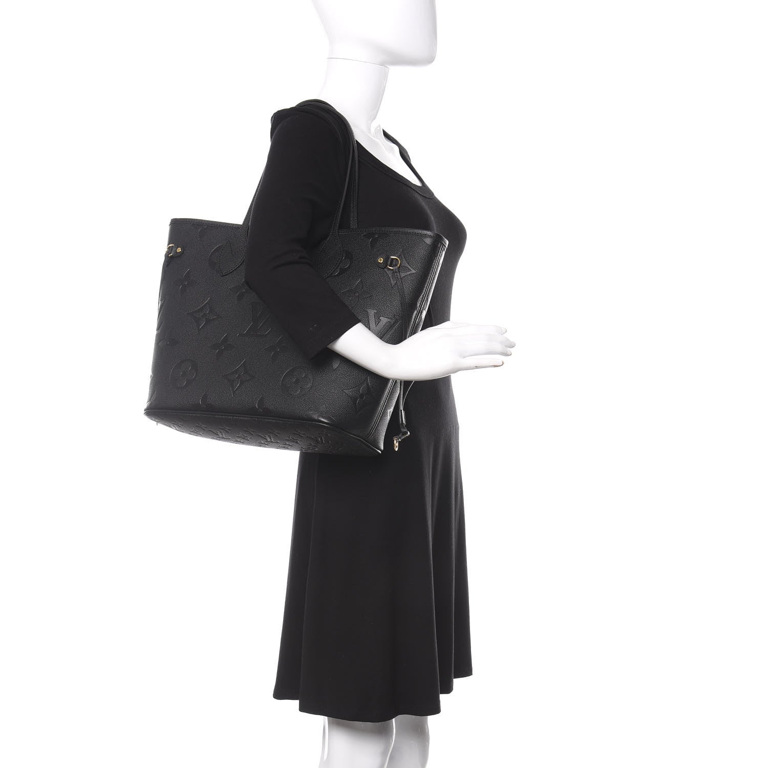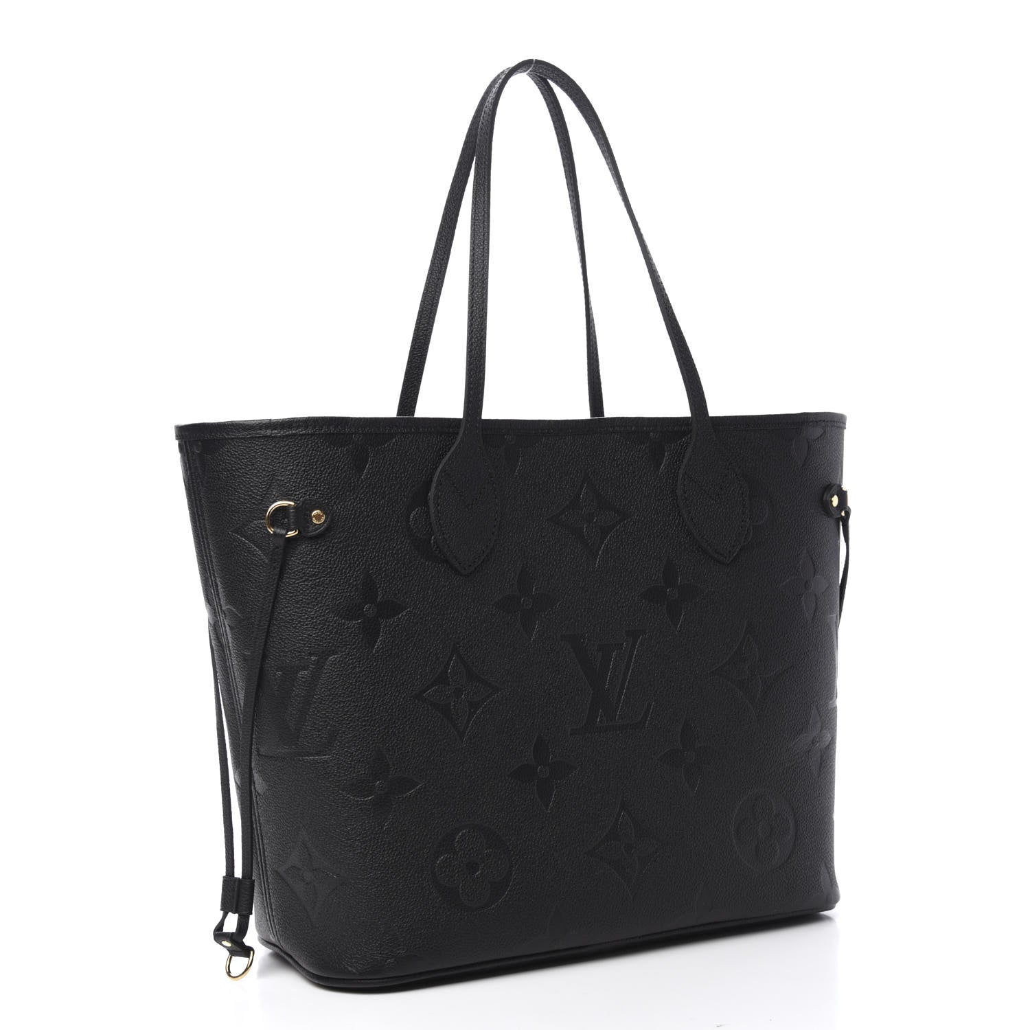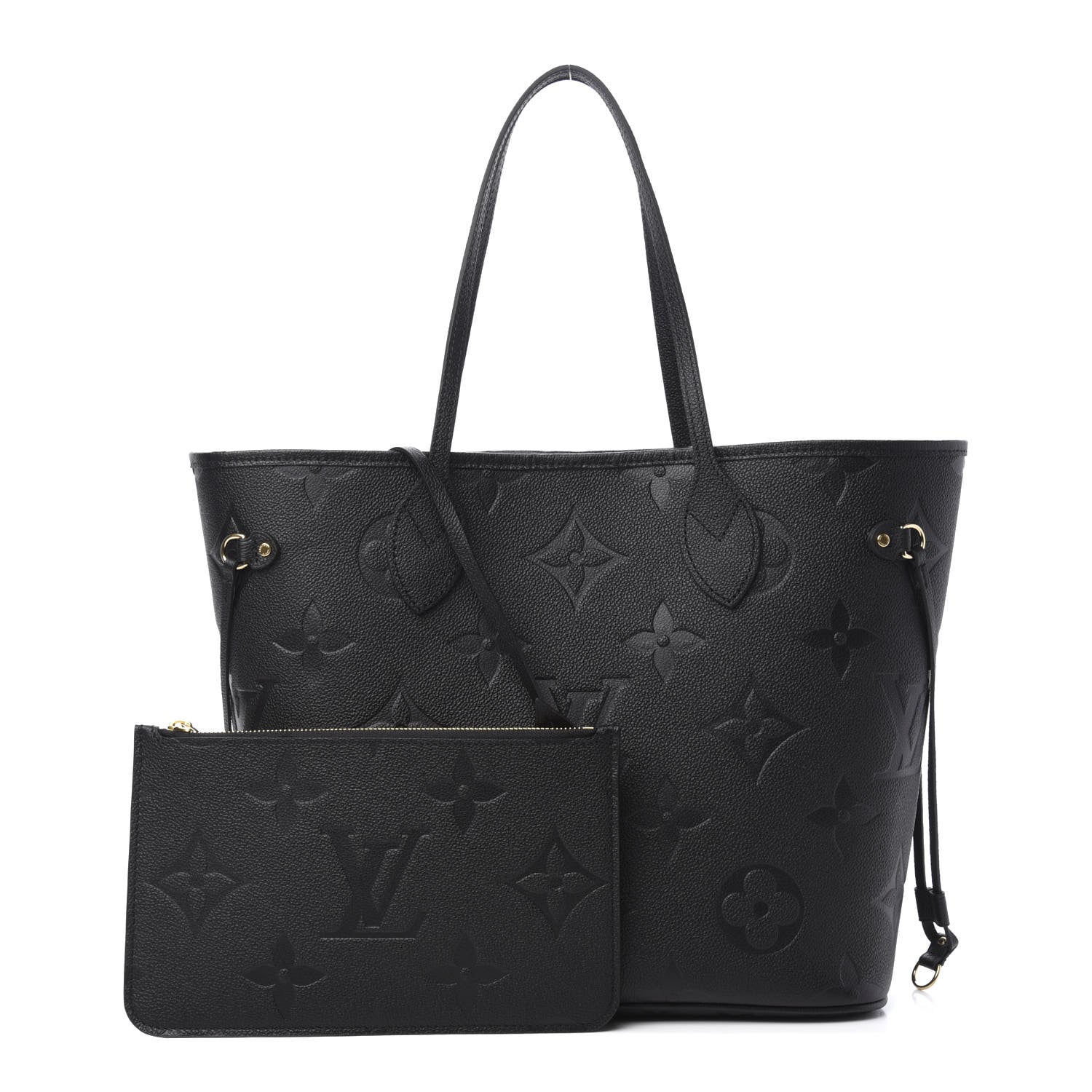 This is an authentic LOUIS VUITTON Empreinte Monogram Giant Neverfull MM in Black. This beautiful tote is crafted of a black monogram embossed leather. The bag features rolled leather top handles and polished gold tone hardware. The top is open to a spacious dark blue microfiber interior with a hanging zipper pocket.Follow this item for alerts. Louis Vuitton is a registered trademark of Louis Vuitton. FASHIONPHILE is not affiliated with Louis Vuitton.