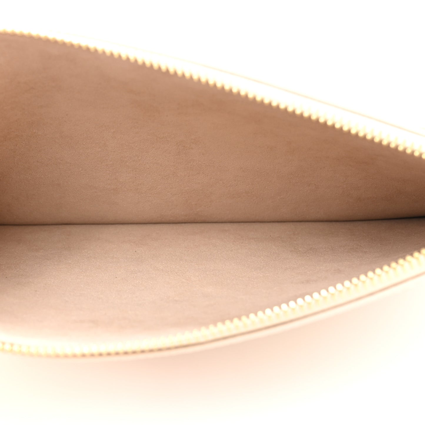 This is an authentic LOUIS VUITTON Empreinte Monogram Giant Neverfull MM Pochette in Creme and Rose Trianon. This beautiful pouch is crafted of a off white leather embossed with a dusty rose Louis Vuitton monograms. The top gold-tone zip opens to a matching microfiber interior.Follow this item for alerts. Louis Vuitton is a registered trademark of Louis Vuitton. FASHIONPHILE is not affiliated with Louis Vuitton.