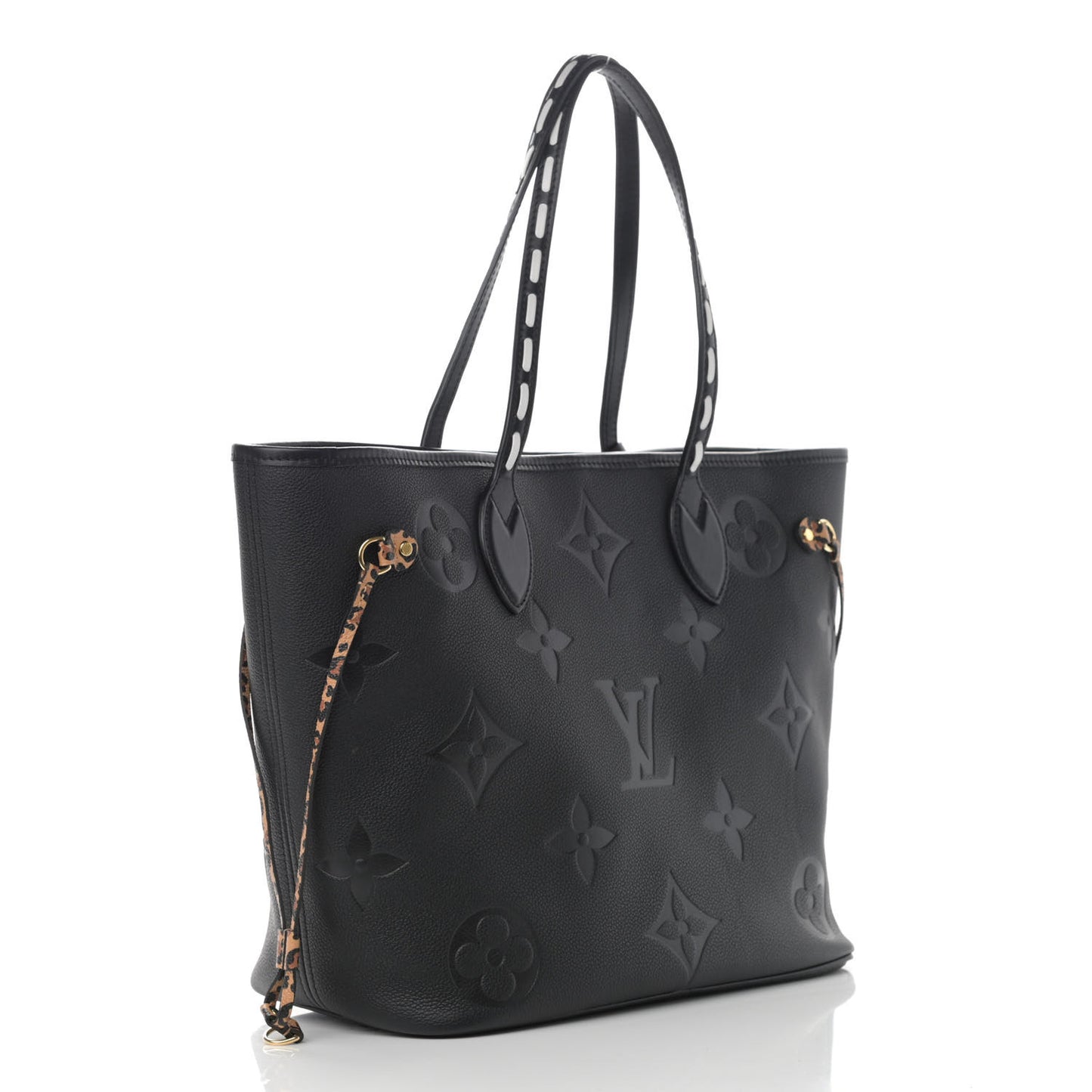 This is an authentic LOUIS VUITTON Empreinte Monogram Giant Wild At Heart Neverfull MM in Black. This pre-owned luxury tote is part of the Louis Vuitton Fall 2021 “Wild at Heart” collection. This limited edition tote bag is crafted of oversized Louis Vuitton monogram embossed calf leather in black. The bag features leather top handles and polished gold-tone hardware with four leopard print side laces for cinching. The top is open to a spacious black microfiber interior with a hanging zipper pocket and a removable leopard print pochette in caramel. The top can be secured across with a snap strap inlay. The Louis Vuitton Neverfull MM can be carried by hand, in the crook of the arm, or over the shoulder. This is the perfect everyday tote, only from Louis Vuitton!Follow this item for alerts. Louis Vuitton is a registered trademark of Louis Vuitton. FASHIONPHILE is not affiliated with Louis Vuitton.