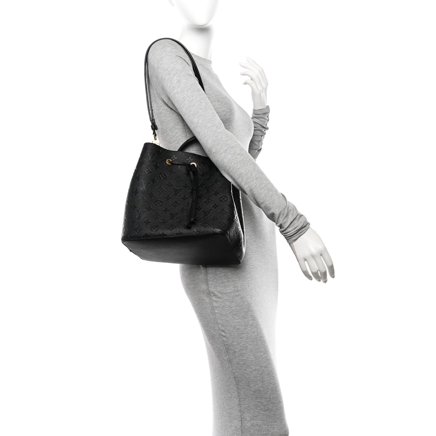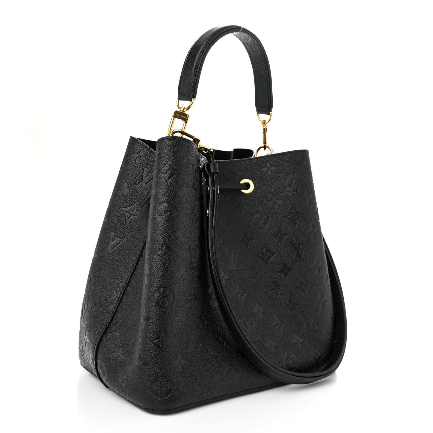 This is an authentic LOUIS VUITTON Empreinte Neonoe MM in Black. This classic bucket style shoulder bag is crafted of black leather with the Louis Vuitton monogram. The bag features a removable black shoulder strap, an optional top handle strap, top cinch strap and polished brass hardware. This opens to a black microfiber interior with a central zipper compartment.Follow this item for alerts. Louis Vuitton is a registered trademark of Louis Vuitton. FASHIONPHILE is not affiliated with Louis Vuitton.
