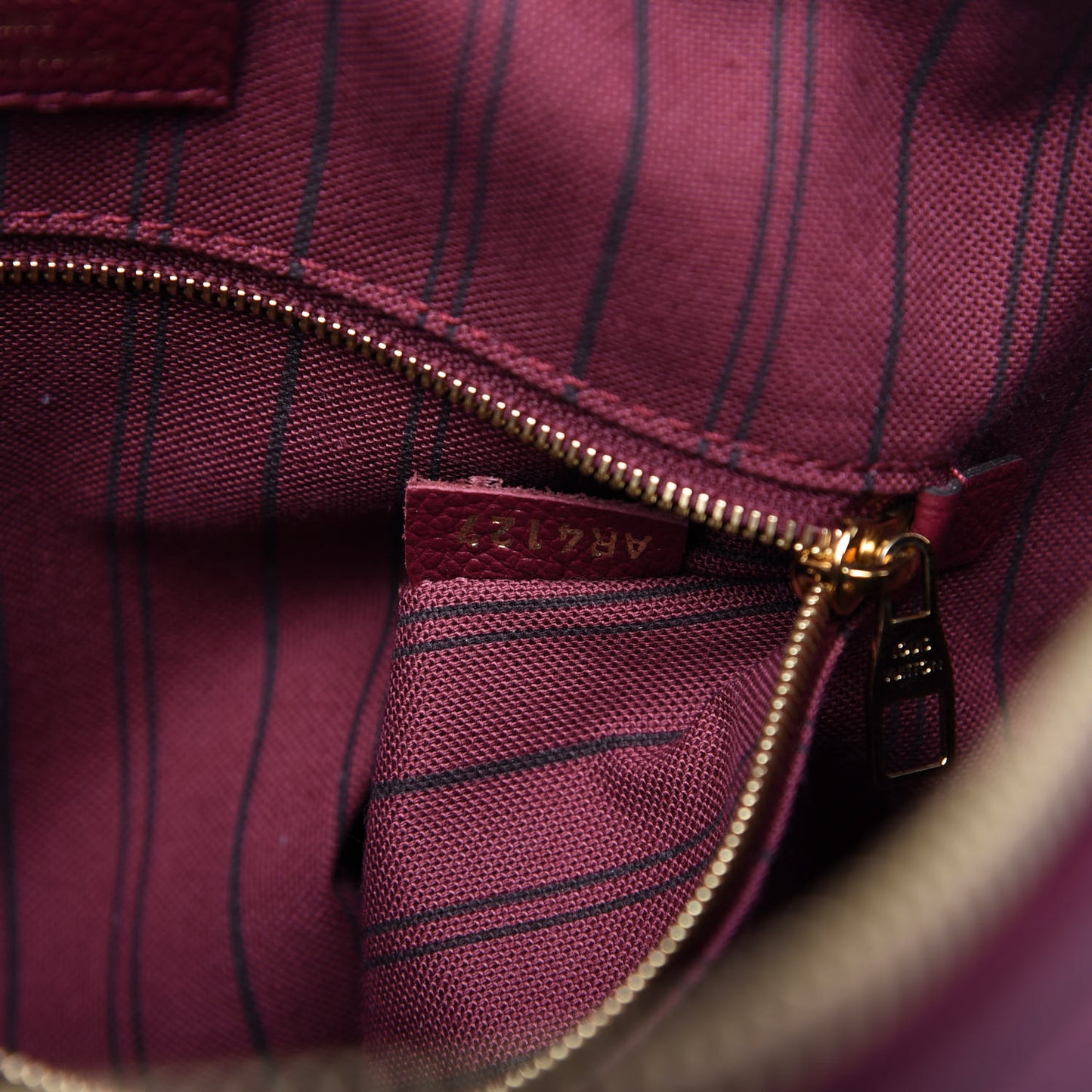This is an authentic LOUIS VUITTON Empreinte Speedy Bandouliere 25 NM in Aurore. This stylish Speedy tote is crafted of Louis Vuitton monogram-embossed leather in burgundy. The handbag features rolled leather top handles, leather zipper pulls, a wide patch pocket on the front, and an optional, adjustable shoulder strap with polished brass hardware. The top zippers open the bag to a striped burgundy fabric interior with zipper and patch pockets.Follow this item for alerts. Louis Vuitton is a registered trademark of Louis Vuitton. FASHIONPHILE is not affiliated with Louis Vuitton.