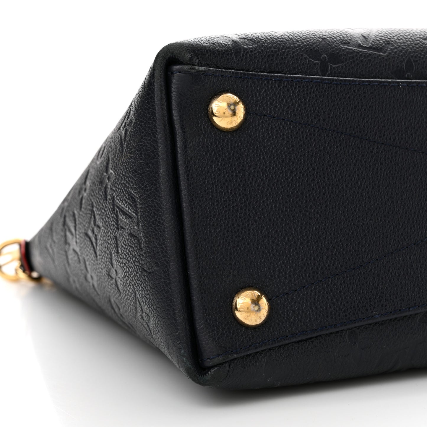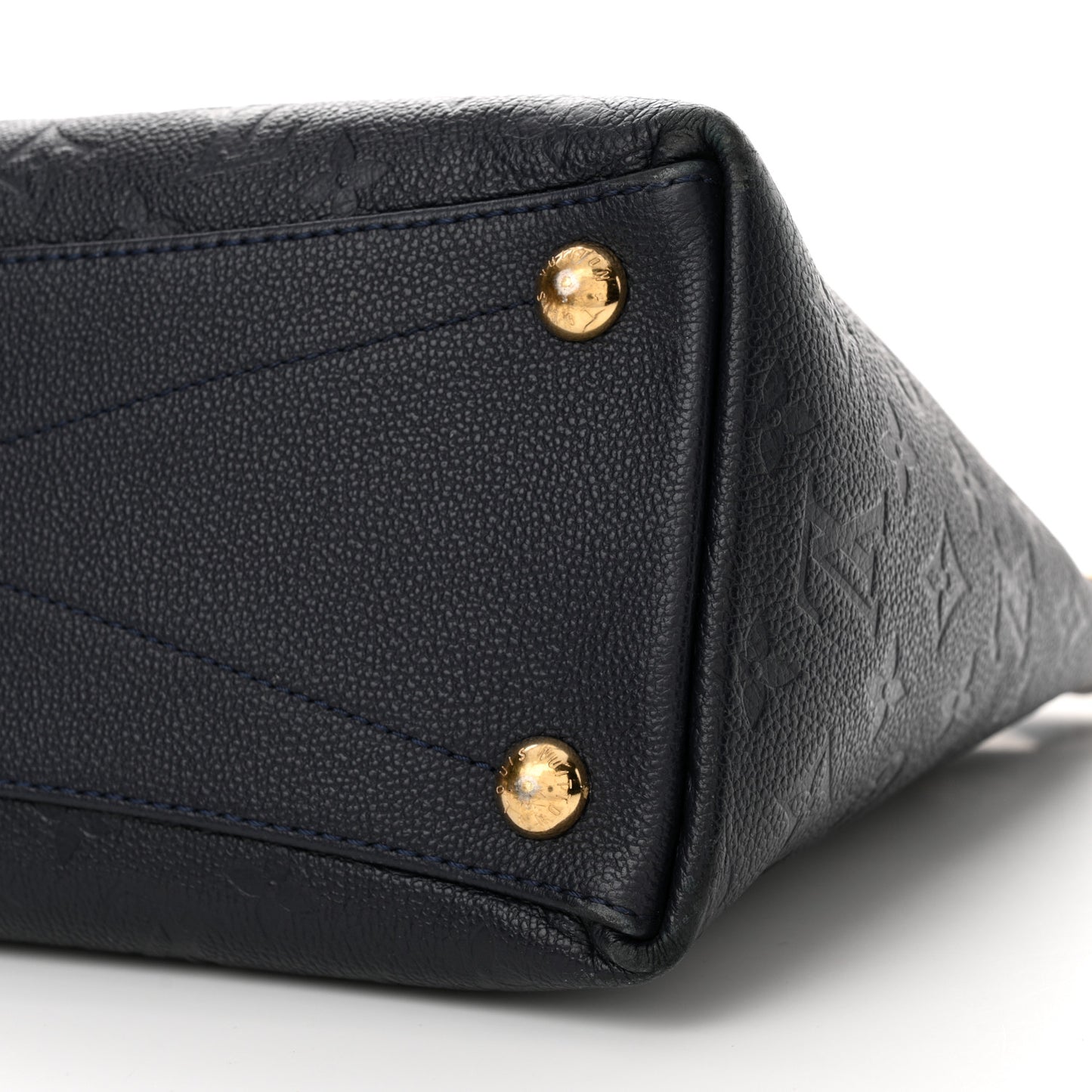 This is an authentic LOUIS VUITTON Empreinte V Tote MM in Marine and Rouge. This shoulder bag is crafted of Louis Vuitton monogram embossed calfskin leather in dark blue, with red resin glazing. The bag features rolled leather handles, an optional, adjustable shoulder strap, and polished brass top zippers that open to a navy blue microfiber interior with patch pockets.Follow this item for alerts. Louis Vuitton is a registered trademark of Louis Vuitton. FASHIONPHILE is not affiliated with Louis Vuitton.