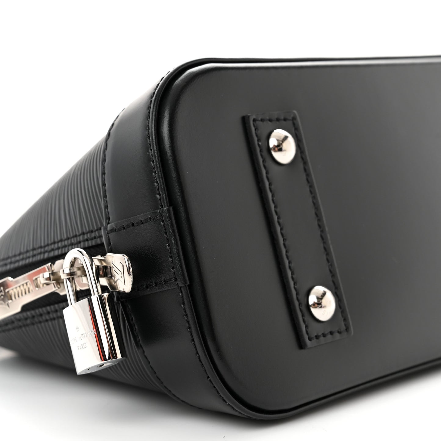 This is an authentic LOUIS VUITTON Epi Alma BB in Black. This stylish handbag is crafted of Louis Vuitton's signature textured epi leather in black. This classic mini handbag features rolled leather top handles, an optional shoulder strap, and polished silver hardware. The zippered top opens to a gray Alcantara fabric interior with a patch pocket.Follow this item for alerts. Louis Vuitton is a registered trademark of Louis Vuitton. FASHIONPHILE is not affiliated with Louis Vuitton.