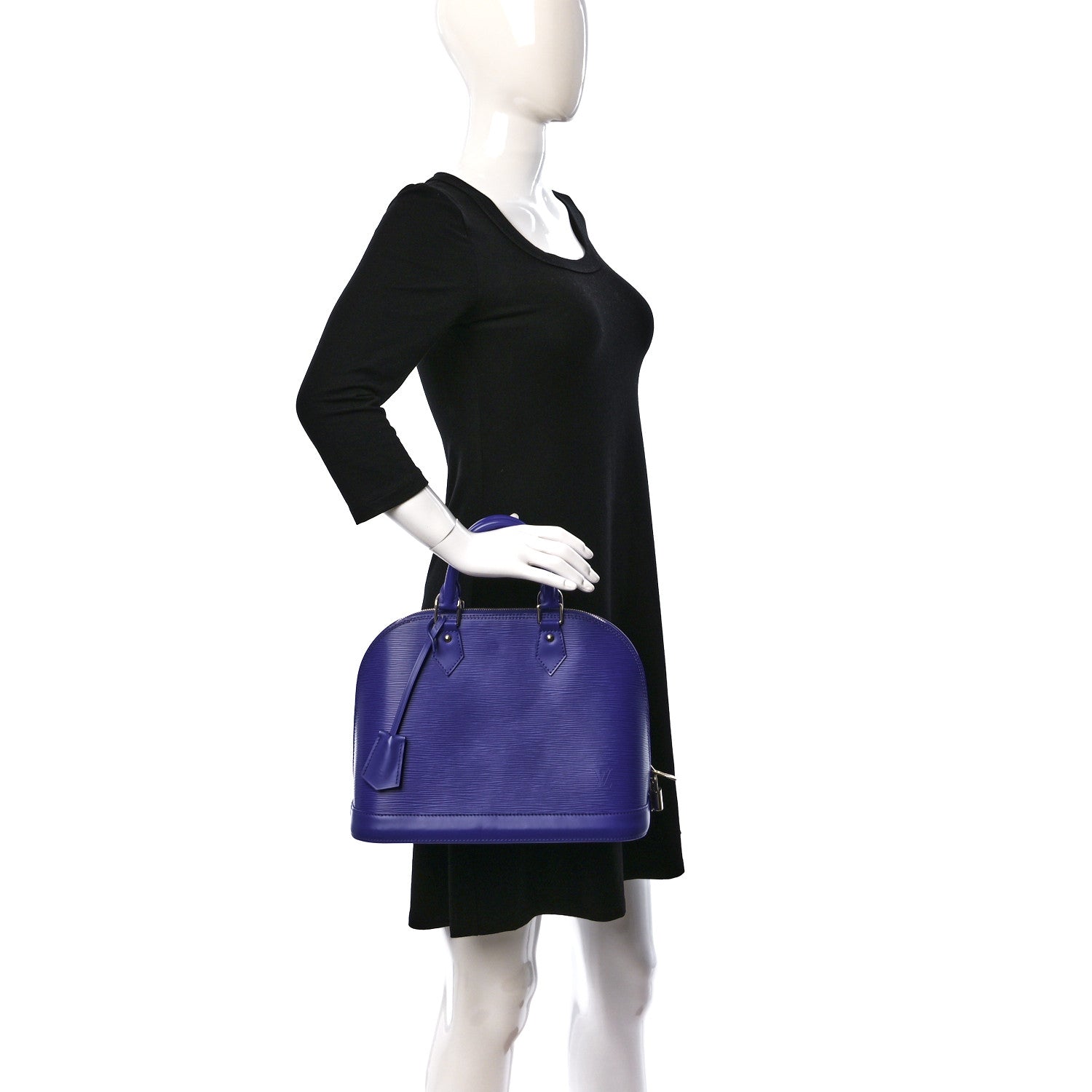This is the authentic LOUIS VUITTON Epi Alma PM in Figue. This is a stunning bowler style tote that is created out of Louis Vuitton signature textured epi leather in vibrant purple. The bag features strong cowhide rolled leather handles and trim with brushed silver hardware including handle rings, a lock and key, and a double zipper. The interior is a matching microfiber with patch pockets.Follow this item for alerts. Louis Vuitton is a registered trademark of Louis Vuitton. FASHIONPHILE is not affiliated with Louis Vuitton.