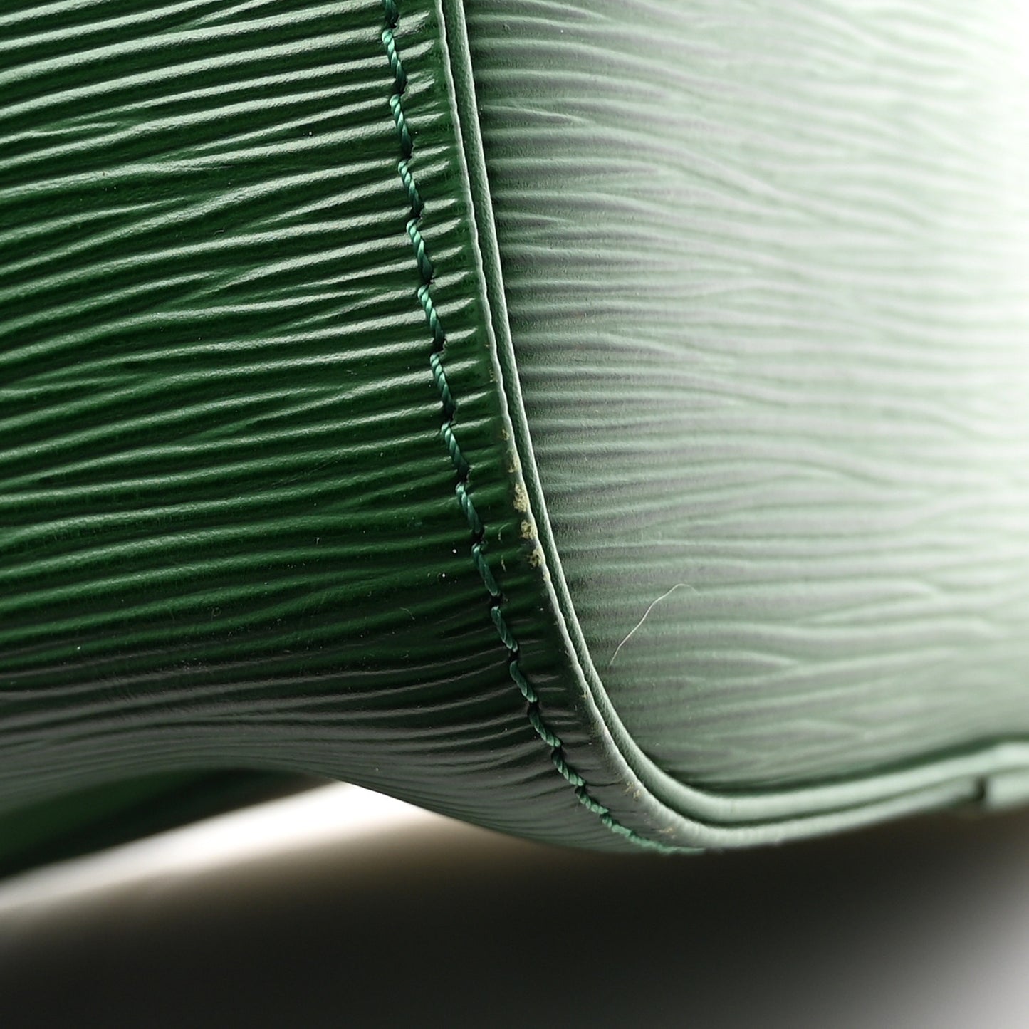 This is an authentic LOUIS VUITTON Epi Keepall 45 in Borneo. This chic multi-purpose tote is crafted of Louis Vuitton textured epi leather. The bag features an external side patch pocket, rolled leather top handles and trim with polished gold tone hardware. The top zippers open to a green microfiber interior.Follow this item for alerts. Louis Vuitton is a registered trademark of Louis Vuitton. FASHIONPHILE is not affiliated with Louis Vuitton.