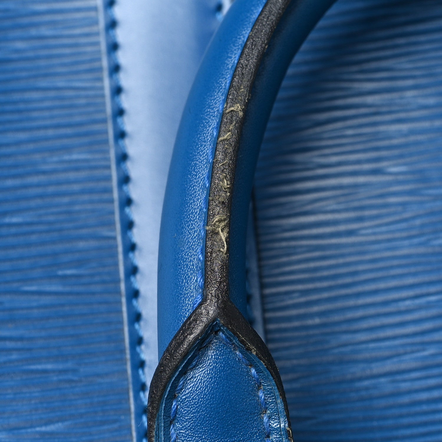 This is an authentic LOUIS VUITTON Epi Keepall 55 in Toledo. This stylish Keepall is crafted of Louis Vuitton signature textured epi leather in blue. The bag features smooth rolled leather top handles and trim with polished brass hardware. The top zipper opens to a spacious sueded interior.Follow this item for alerts. Louis Vuitton is a registered trademark of Louis Vuitton. FASHIONPHILE is not affiliated with Louis Vuitton.