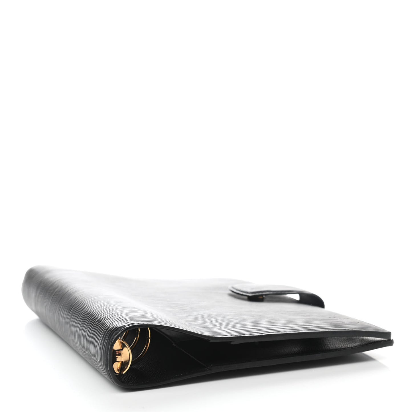 This is an authentic LOUIS VUITTON Epi Large Ring Agenda in Black. This is a very sophisticated large agenda from Louis Vuitton that is expertly crafted of Louis Vuitton signature textured black epi leather. The agenda features a cross over strap that opens to a black cross-grain leather interior with patch pockets and silver rings. This is a perfect everyday agenda with the right accent of luxury and style from Louis Vuitton!Follow this item for alerts. Louis Vuitton is a registered trademark of Louis Vuitton. FASHIONPHILE is not affiliated with Louis Vuitton.