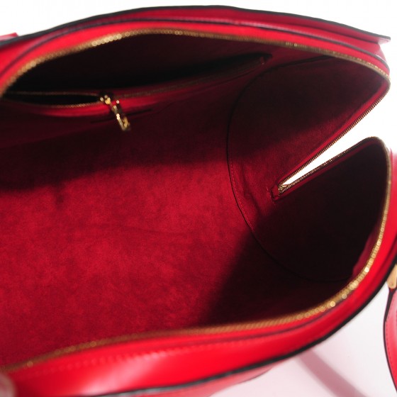 This is an authentic LOUIS VUITTON Epi Solferino 50 in Castilian Red. This refined tote is crafted of textured leather with smooth leather shoulder straps and trim, and brass hardware. including tall shoulder straps. The wraparound zipper opens to a matching microfiber interior with a zip pocket. This is an ideal everyday tote from Louis Vuitton!Follow this item for alerts. Louis Vuitton is a registered trademark of Louis Vuitton. FASHIONPHILE is not affiliated with Louis Vuitton.