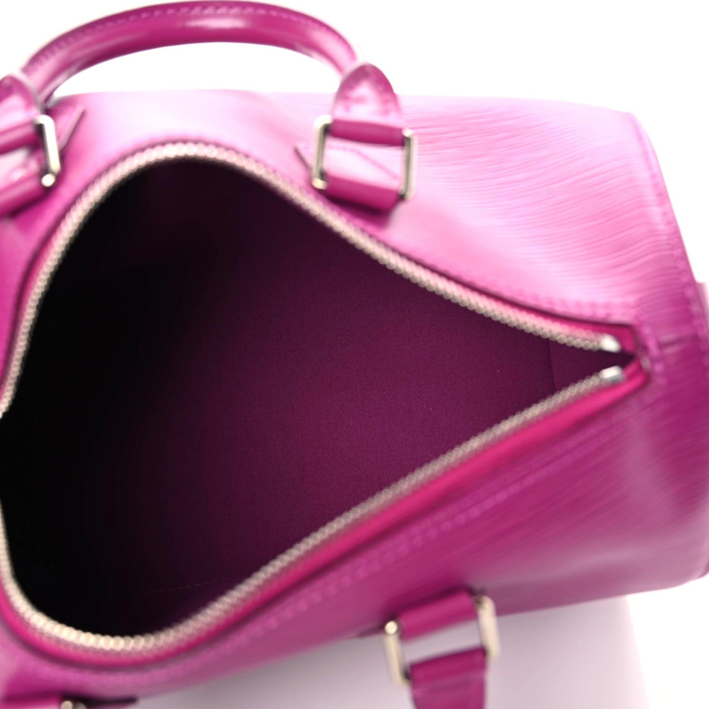 This is the popular and authentic LOUIS VUITTON Epi Speedy 25 Grenade. This is the all-purpose Louis Vuitton classic handbag crafted of purple Louis Vuitton textured epi leather. The Speedy features leather piping at the sides and rolled leather handles that are durable and smooth. The silver hardware includes handle rings, studs, and a zipper closure that is made to last generations.Follow this item for alerts. Louis Vuitton is a registered trademark of Louis Vuitton. FASHIONPHILE is not affiliated with Louis Vuitton.