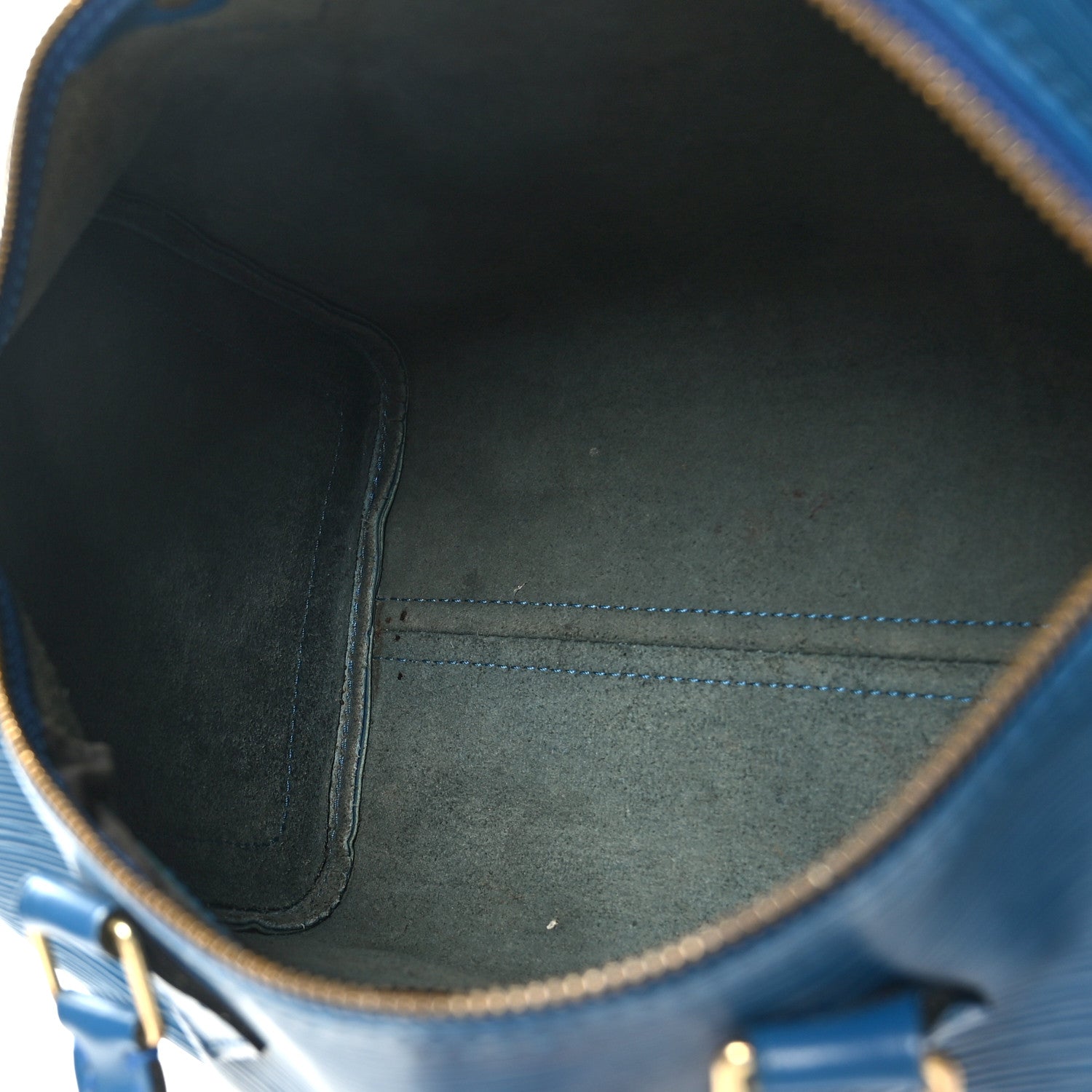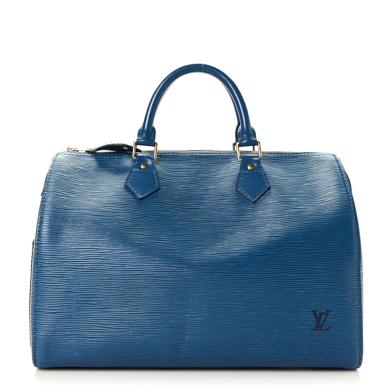 This is an authentic LOUIS VUITTON Epi Speedy 30 in Toledo. This handbag is crafted of Louis Vuitton signature textured Epi leather in blue. The bag features rolled leather top handles, smooth leather trim, a side patch pocket, and brass hardware. The top zipper opens to a spacious blue suede leather interior with a hanging pocket.Follow this item for alerts. Louis Vuitton is a registered trademark of Louis Vuitton. FASHIONPHILE is not affiliated with Louis Vuitton.
