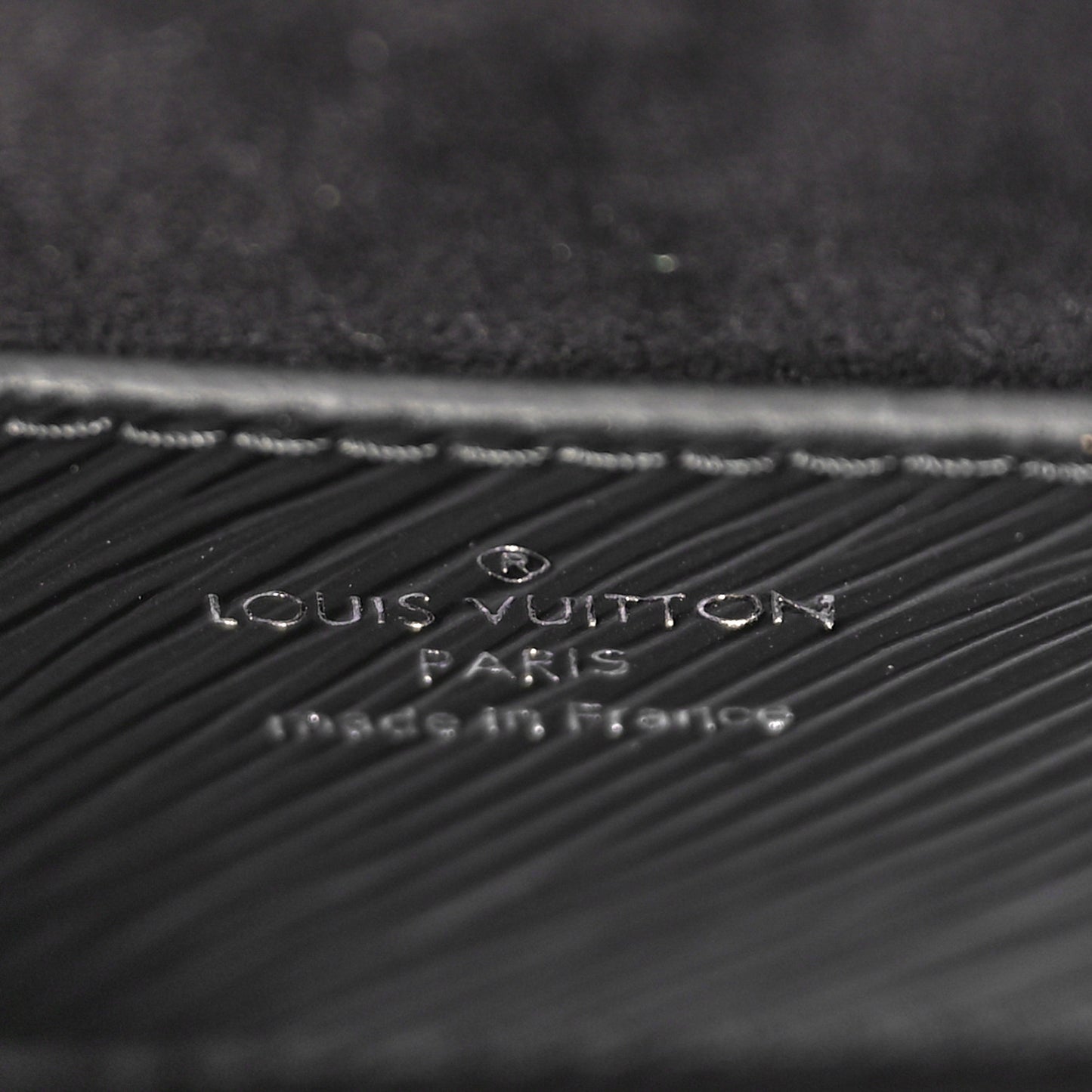 This is an authentic LOUIS VUITTON Epi Twist Shoulder Bag MM in Black. This stylish shoulder bag is crafted of textured epi leather in black. The bag features a polished silver chain shoulder strap with a leather shoulder pad and a polished silver LV twist lock on the facing flap. This opens to a black microfiber interior with pockets.Follow this item for alerts. Louis Vuitton is a registered trademark of Louis Vuitton. FASHIONPHILE is not affiliated with Louis Vuitton.